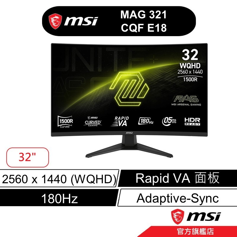 msi 微星 MAG 321CQF E18 電競曲面 32型/180Hz/QHD/VA/DP/HDMIMAG 321CQF E18MSI微星品牌旗艦店
