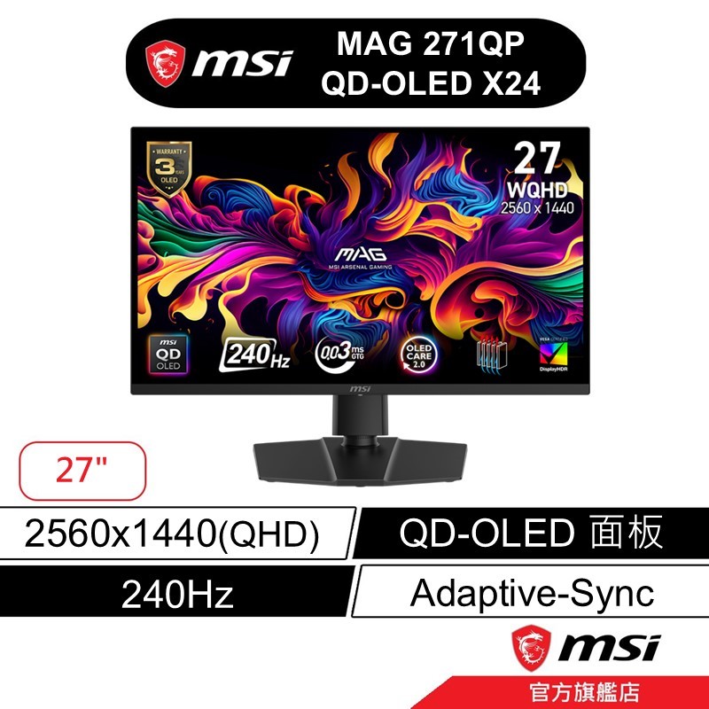 msi 微星 MAG 271QP QD-OLED X24 平面 電競螢幕 27型/240Hz/QHD/QD-OLED面板MAG271QP QD-OLED X24MSI微星品牌旗艦店