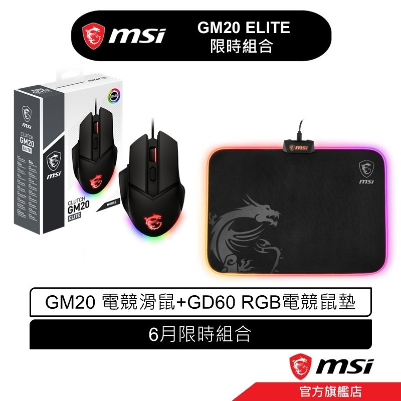 MSI 微星 CLUTCH GM20 ELITE 電競滑鼠CLUTCH GM20 ELITE 滑鼠|GM20滑鼠+GD60電競鼠墊MiceMSI微星品牌旗艦店