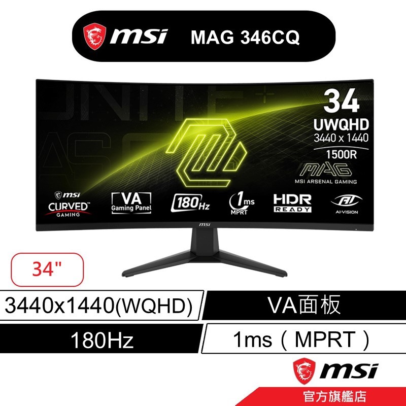 msi 微星 MAG 346CQ 34型 VA WQHD 180Hz 曲面 電競螢幕 1500R 21:9MAG 346CQMSI微星品牌旗艦店