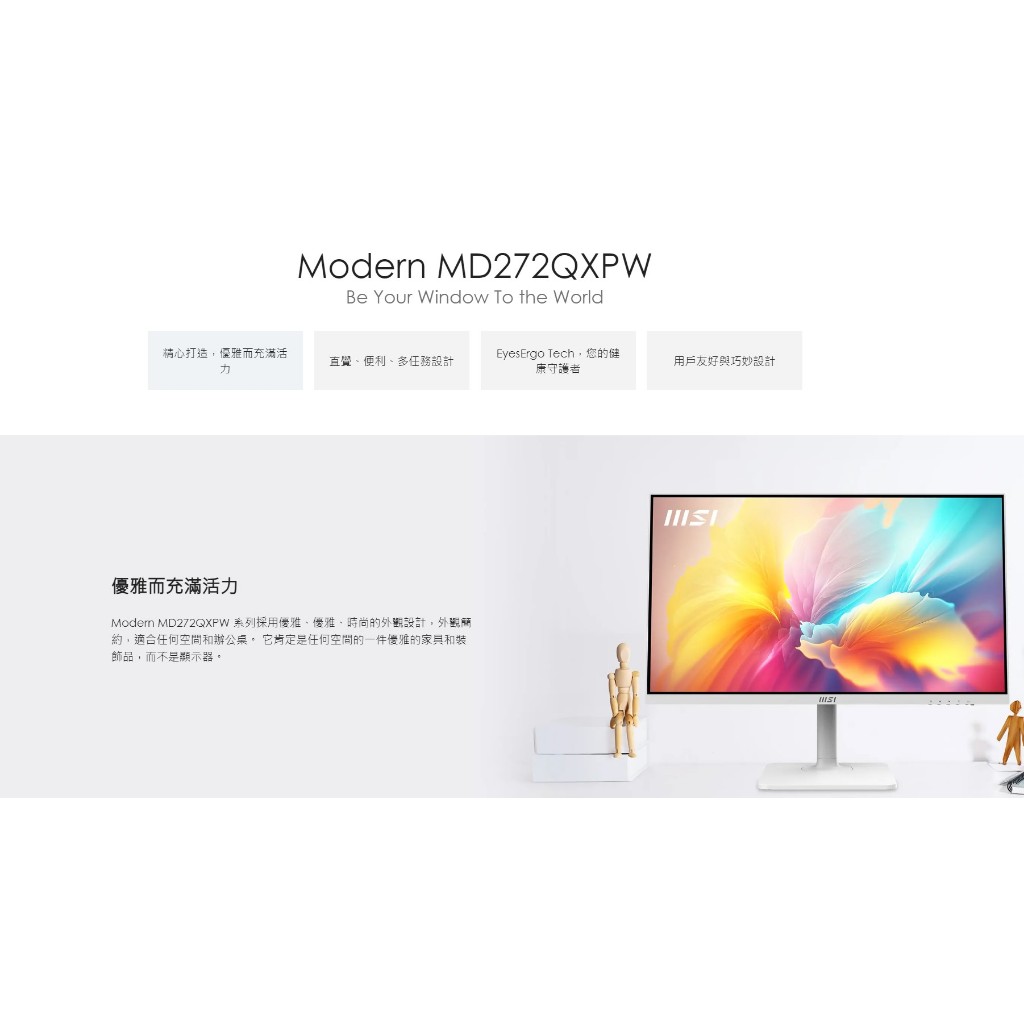 msi 微星 Modern MD272QXPW 2K IPS 平面螢幕 27吋 WQHD/100Hz/有喇叭/白色MD272QXPW+無線充電盤|福利品出清,請先聊聊詢問貨況後再下單!!|MD272QXPW|MD272QXPW福利品MSI微星品牌旗艦店