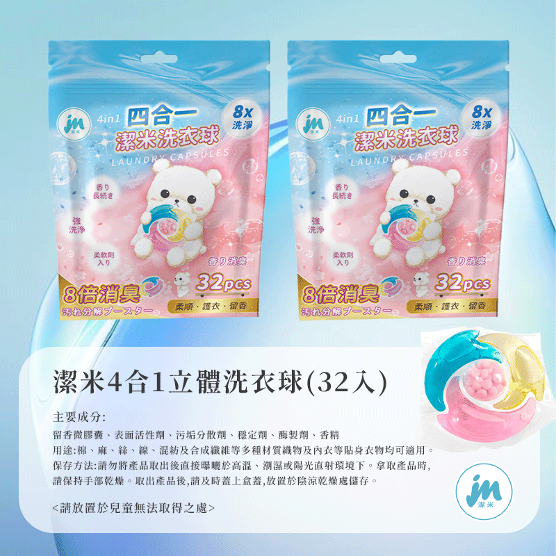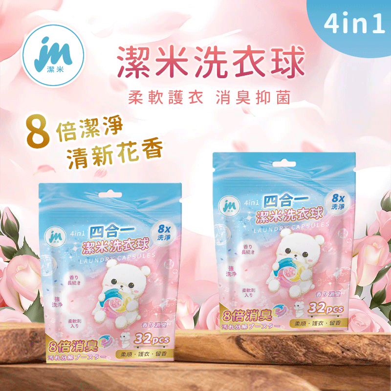 潔米 四合一洗衣球 洗衣球 洗衣服 洗衣膠囊 洗衣豆 洗衣凝珠 洗衣膠球 洗衣精球 柔軟護衣 消臭 抗菌-現貨1包(32顆)Laundry CareMR.COM 生活與你同在-歡迎禮贈品及批發團購洽談