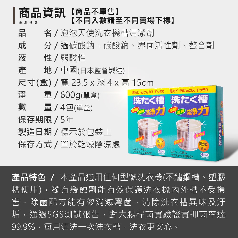 泡泡天使洗衣機槽清潔劑 多組合可選 [免運]3盒 (150g*12包)|6盒 (150g*24包)|9盒 (150g*36包)Cleaning AgentsMr.Box l 收納箱 收納櫃 洗衣籃 曬衣架 行李箱
