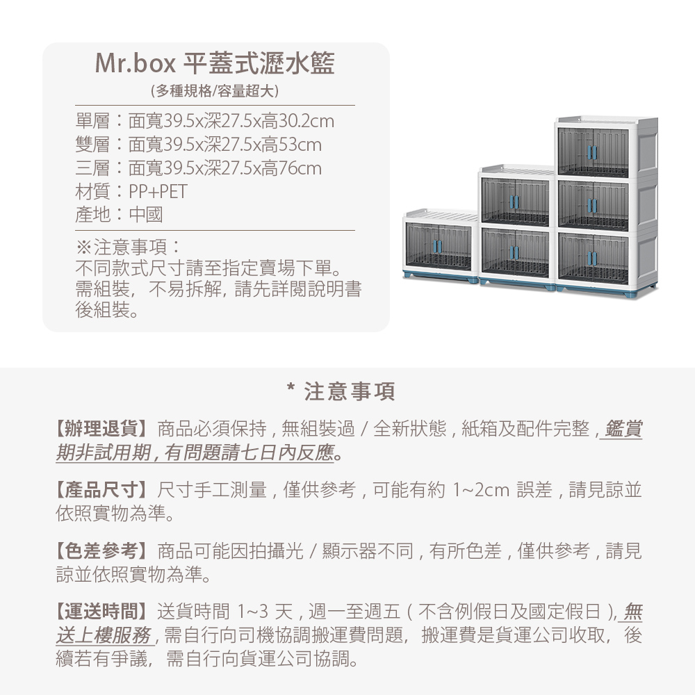 Mr.box 新型 平蓋款 組合式瀝水碗櫃 2層/3層可選 免運2層|3層Kitchen RacksMr.Box l 收納箱 收納櫃 洗衣籃 曬衣架 行李箱