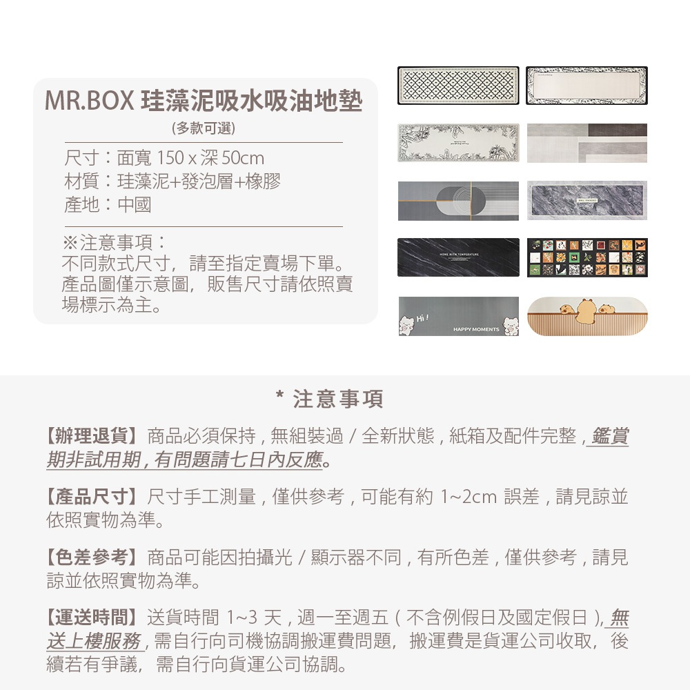 【Mr.box】 硅藻泥吸水吸油居家廚房長地墊150*50CM 多款可選 免運 008002A:現代|B:高雅|C:森林|D:印象|I:可愛貓|兩入組(下單請備註編號ex:A+C))|E:抽象|F:石紋|G:黑石|H:中國風|J:頑皮豬Carpets & RugsMr.Box l 收納箱 收納櫃 洗衣籃 曬衣架 行李箱