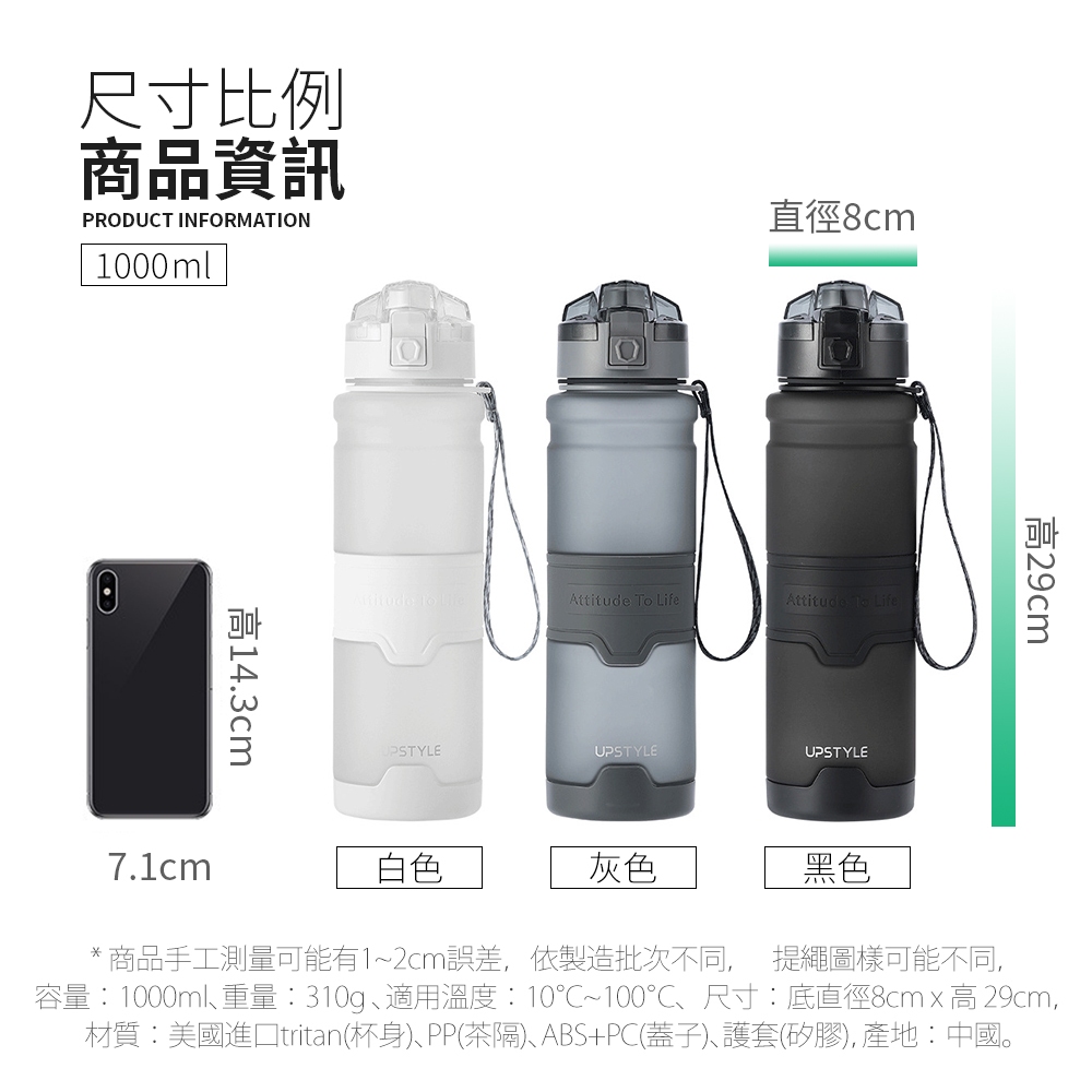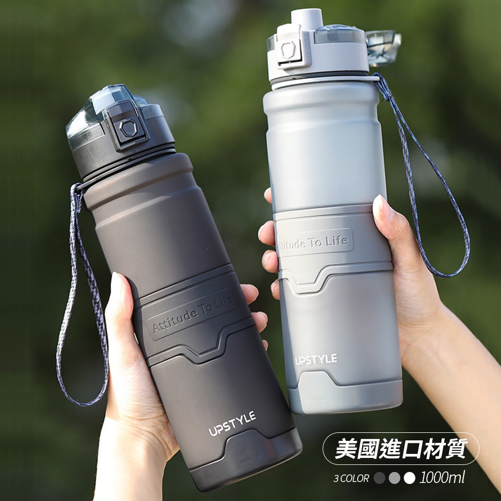 Mr.box 美國進口Tritan材質 防摔運動水壺1000ml(矽膠水瓶 運動水杯 水瓶 健身杯) 三色可選 免運黑色1000ml|白色1000ml|灰色1000mlWater Bottles & AccessoriesMr.Box l 收納箱 收納櫃 洗衣籃 曬衣架 行李箱