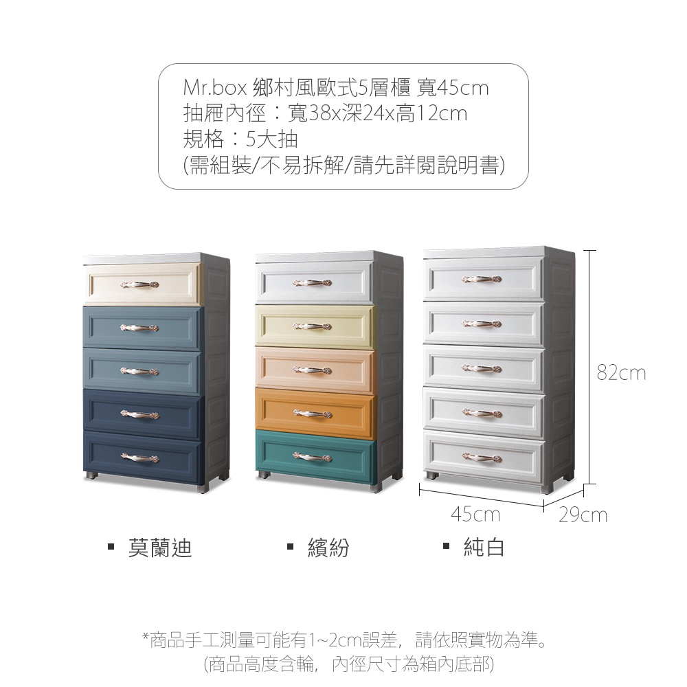 MR.BOX【024105】45面寬-鄉村風歐式大5層收納櫃-附輪(純白/繽紛/莫蘭迪) [免運]莫蘭迪|純白色|繽紛色Storage Boxes, Bags & BasketsMr.Box l 收納箱 收納櫃 洗衣籃 曬衣架 行李箱