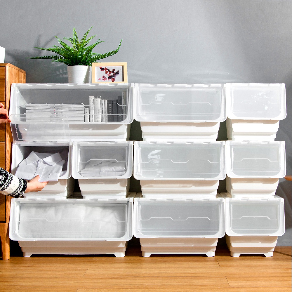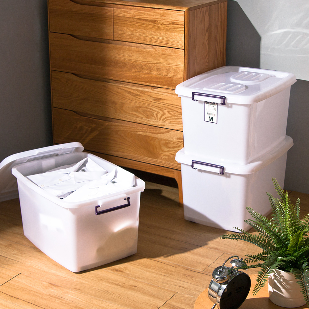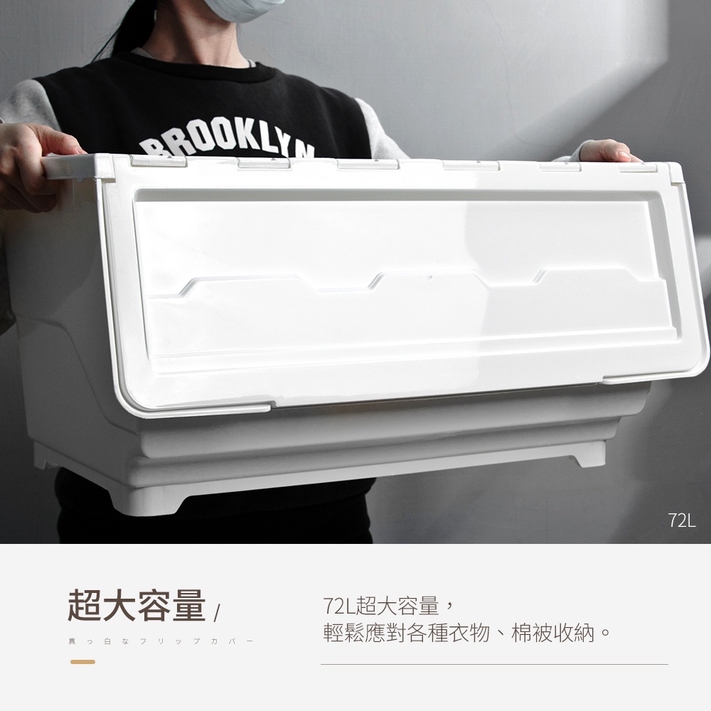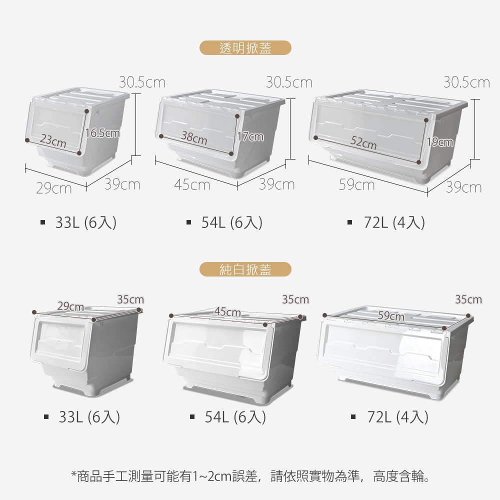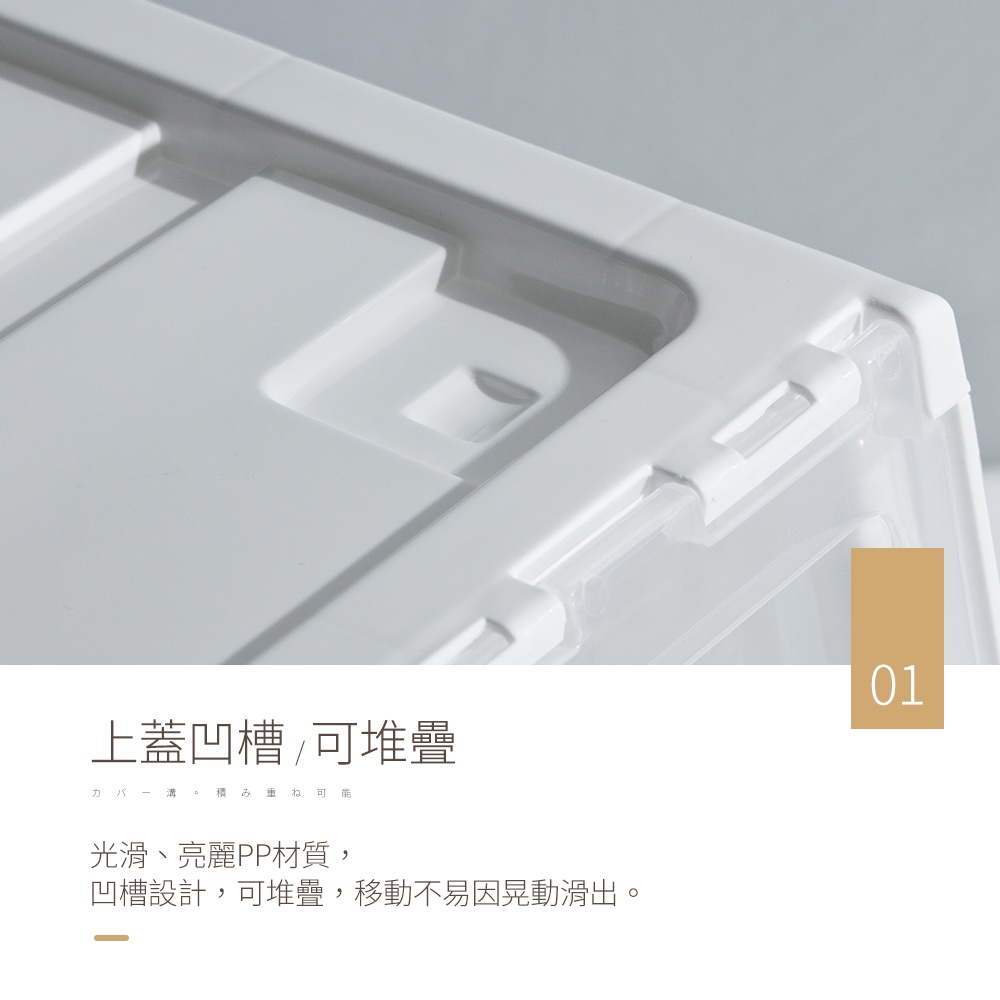 MR.BOX 大面寬典雅斜口上掀式可堆疊附輪加厚收納箱 3種尺寸顏色可選 [免運](72公升 4入組)-純白款(透明掀蓋)|(33公升 6入組)-純白款(透明掀蓋)|(54公升 6入組)-純白款(透明掀蓋)Storage Boxes, Bags & BasketsMr.Box l 收納箱 收納櫃 洗衣籃 曬衣架 行李箱
