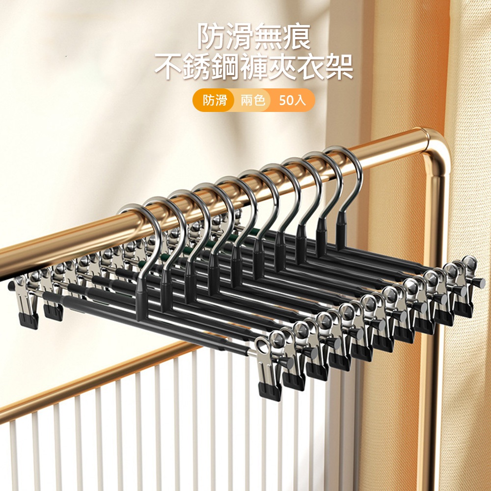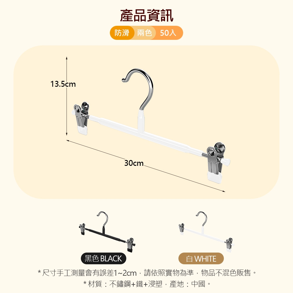 Mr.Box 50入多功能不銹鋼無痕防滑帶夾褲裙架(衣褲夾 防風內衣架 晾衣架) 兩色可選 007008白色|黑色Hangers & PegsMr.Box l 收納箱 收納櫃 洗衣籃 曬衣架 行李箱