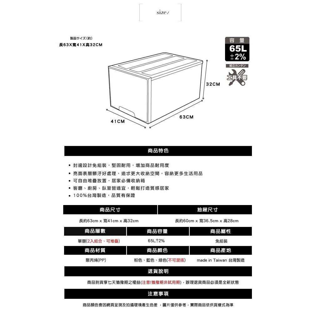 Mr.box 經典風 65L鏡面單層收納櫃(三色可選)2入 【005001】[免運]粉色|藍色|綠色Storage Boxes, Bags & BasketsMr.Box l 收納箱 收納櫃 洗衣籃 曬衣架 行李箱