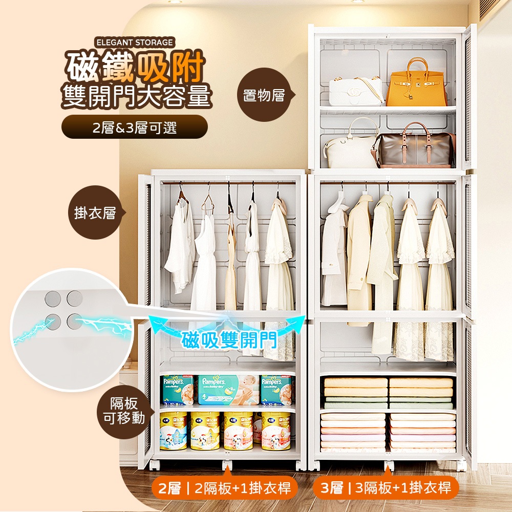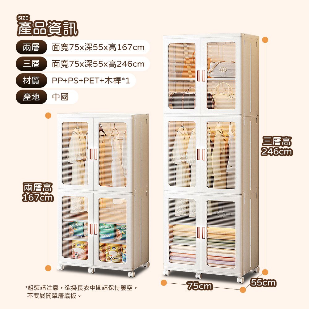 Mr.box 75面寬-新式摺疊成人衣櫥收納櫃 深度55公分 2層 3層-透白面板 免運2層 (透白面板)|3層 (透白面板)Wardrobe OrganizersMr.Box l 收納箱 收納櫃 洗衣籃 曬衣架 行李箱