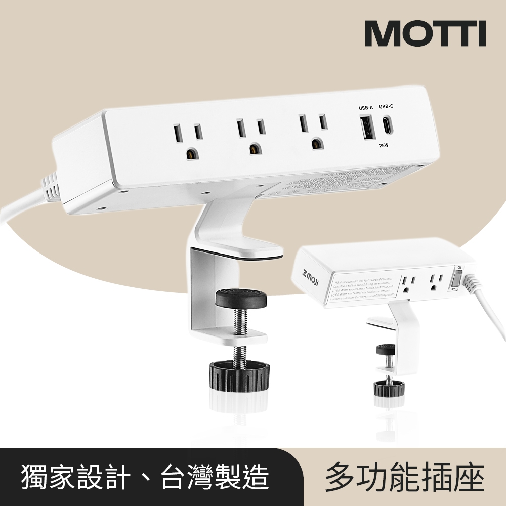 MOTTI|Zmoji 雙向多用途插座 支撐架款 / 夾桌式 / 延長線夾 (含USB/Type-C充電孔)