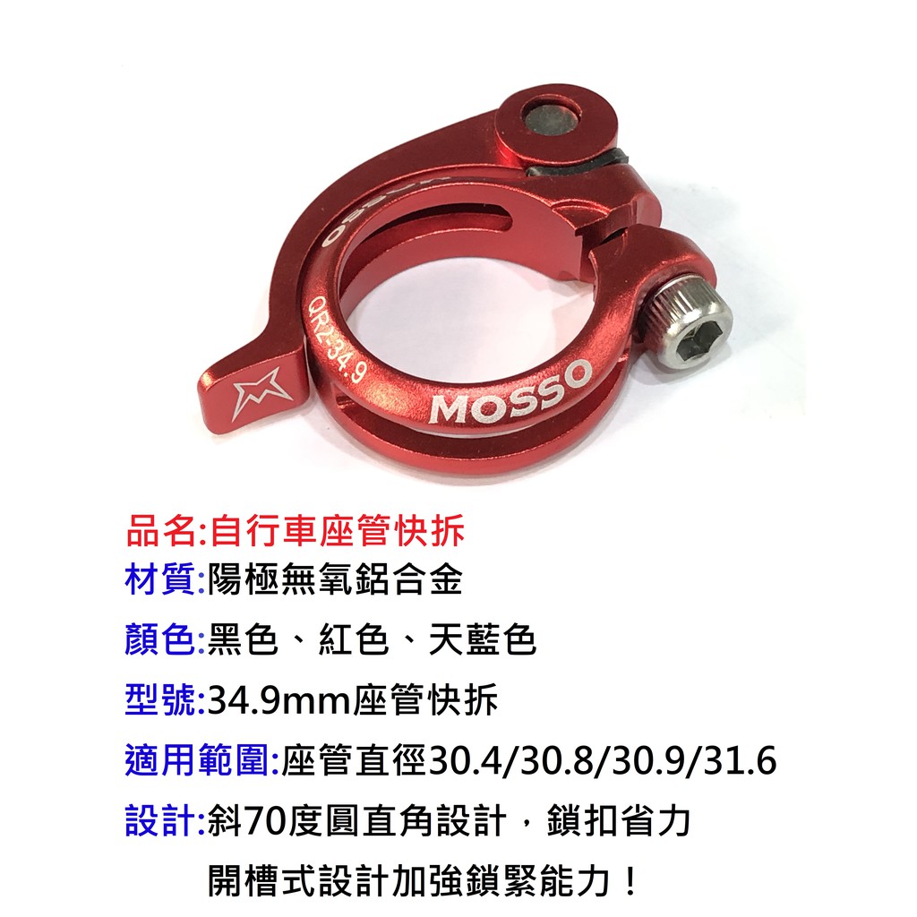 自行車快拆式鋁合金座管夾34.9mm陽極彩色/座管束/坐管束/坐管夾/坐桿夾/座桿夾/公路車紅色|藍色|黑色CyclingMOSSO BIKE 官方旗艦店