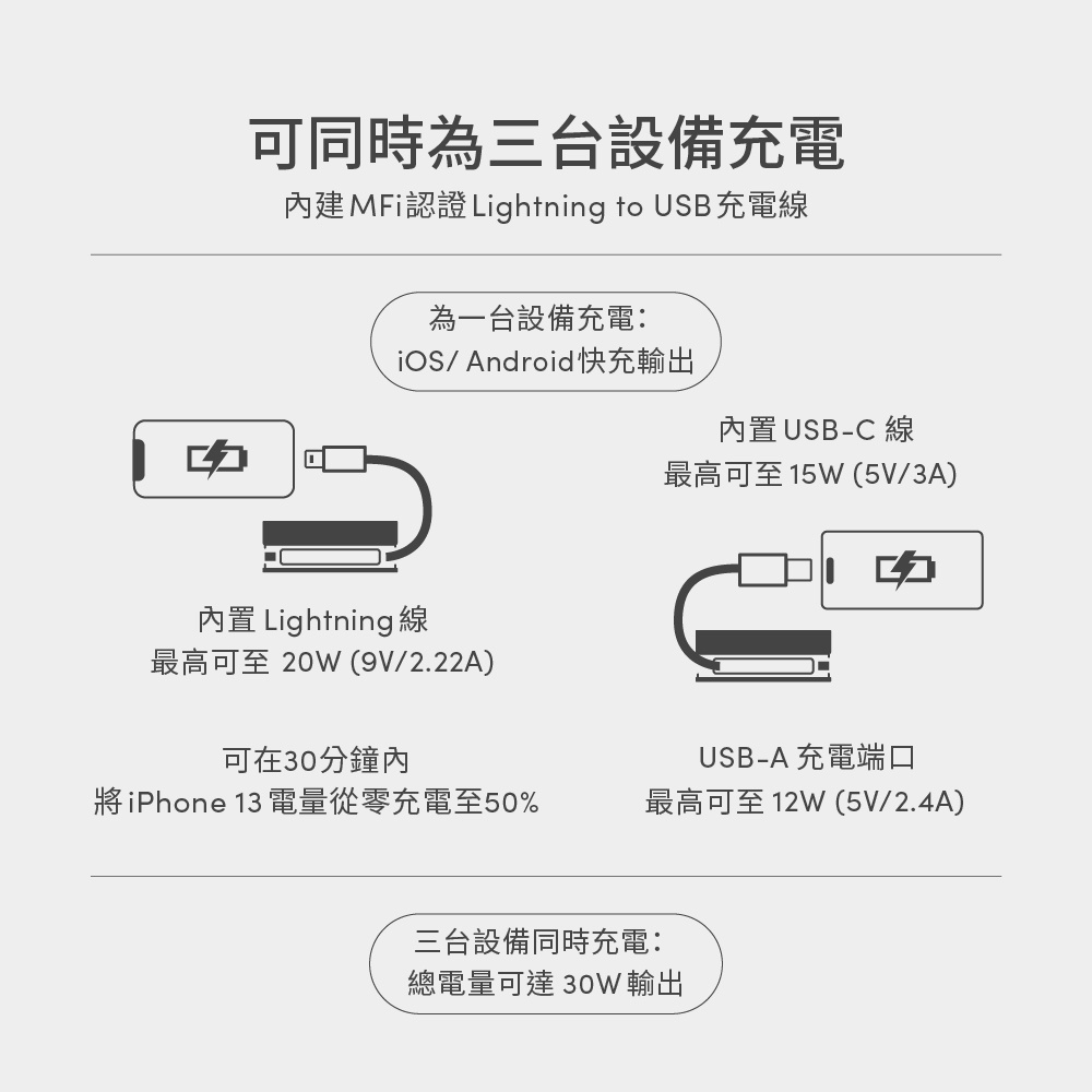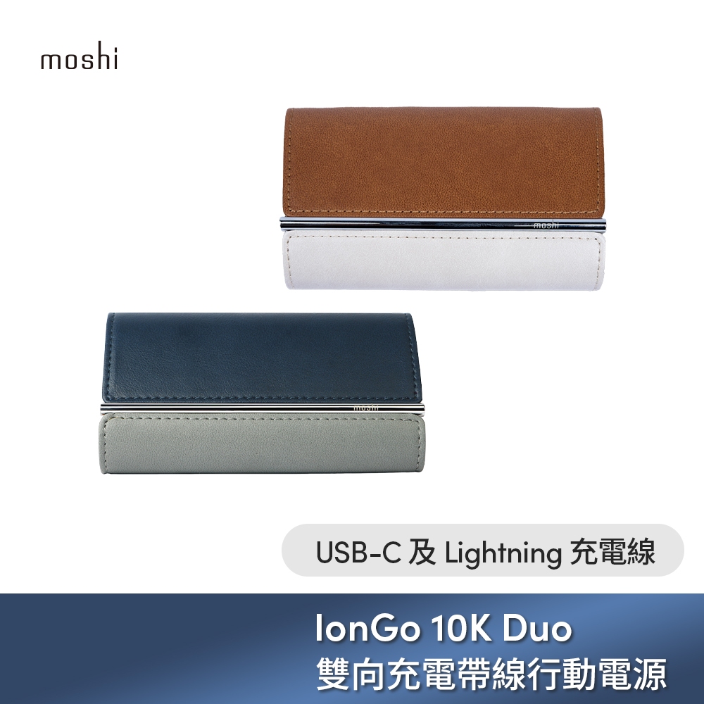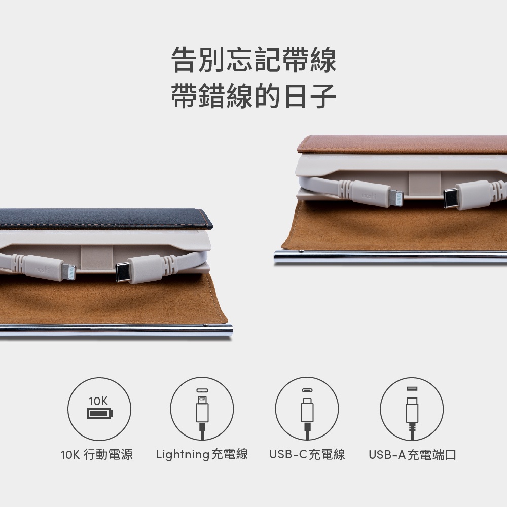 Moshi IonGo 10K 帶線行動電源 (USB-C 及 Lightning 雙充電線,iPhone 充電專用)午夜藍|瑪瑙黑|粉紅色|焦糖棕Powerbanks & Batteriesmoshi 官方旗艦店
