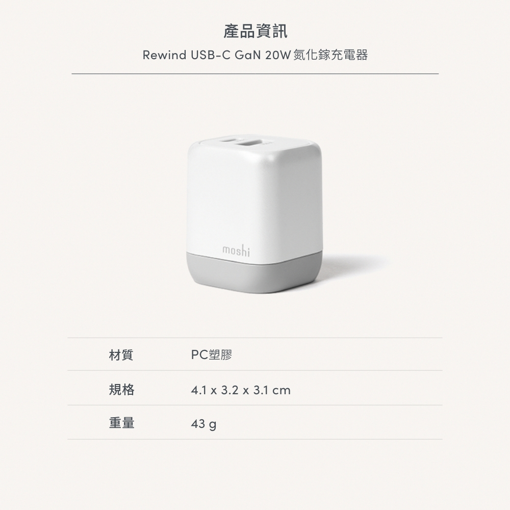 Moshi Rewind USB-C GaN 20W 氮化鎵充電器單一規格Cables, Chargers & Convertersmoshi 官方旗艦店