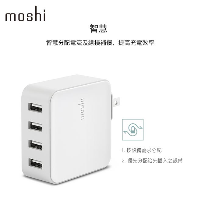 Moshi ProGeo 旅充系列 USB 4-Port 充電器 (35W,US美規) 2.4A 快充 萬國充電單一規格Cables, Chargers & Convertersmoshi 官方旗艦店