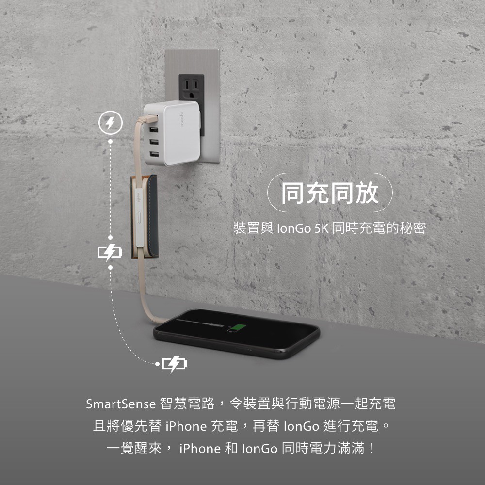 Moshi IonGo 5K 帶線行動電源 (USB 及 Lightning 雙充電
