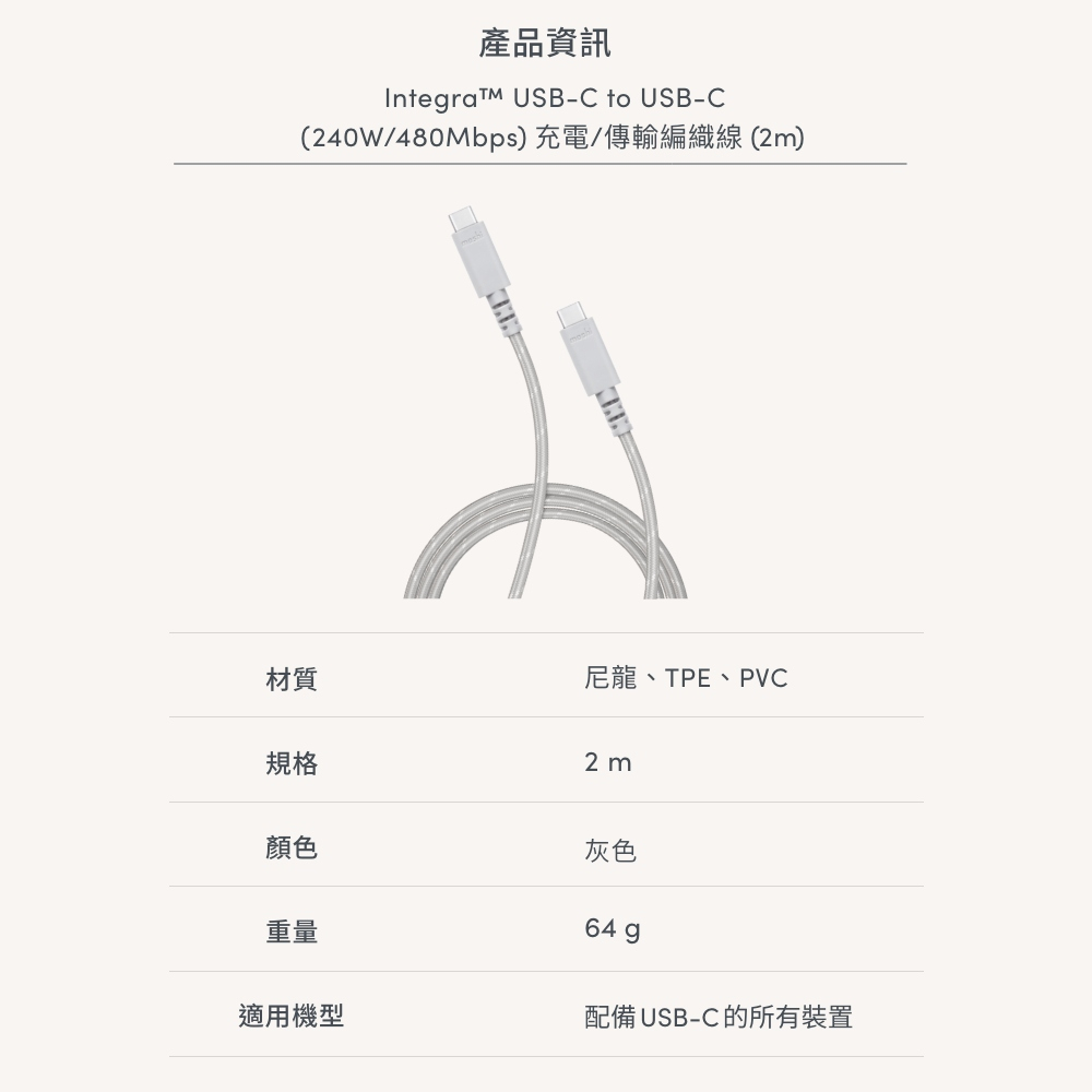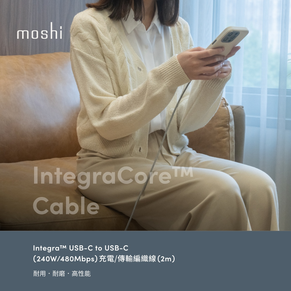 Moshi Integra USB-C to USB-C 240W/480Mbps 充電傳輸編織線 (2m)鈦灰 2mCables, Chargers & Convertersmoshi 官方旗艦店