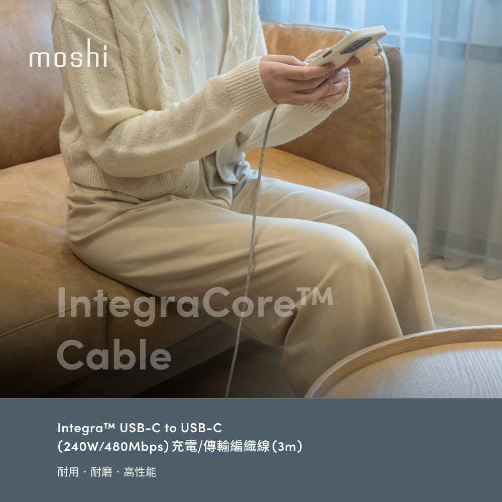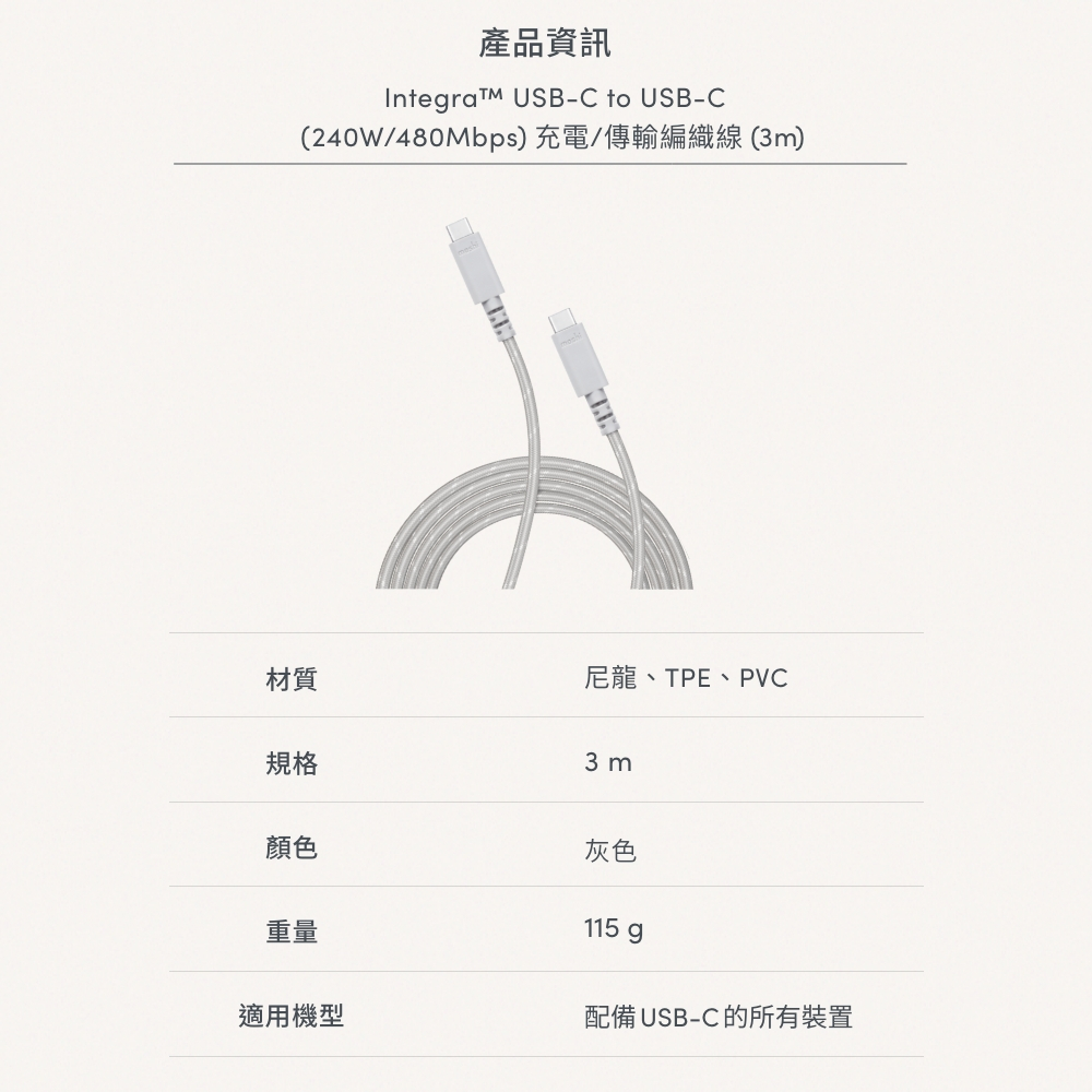 Moshi Integra USB-C to USB-C 240W/480Mbps 充電傳輸編織線 (3m)鈦灰 3mCables, Chargers & Convertersmoshi 官方旗艦店