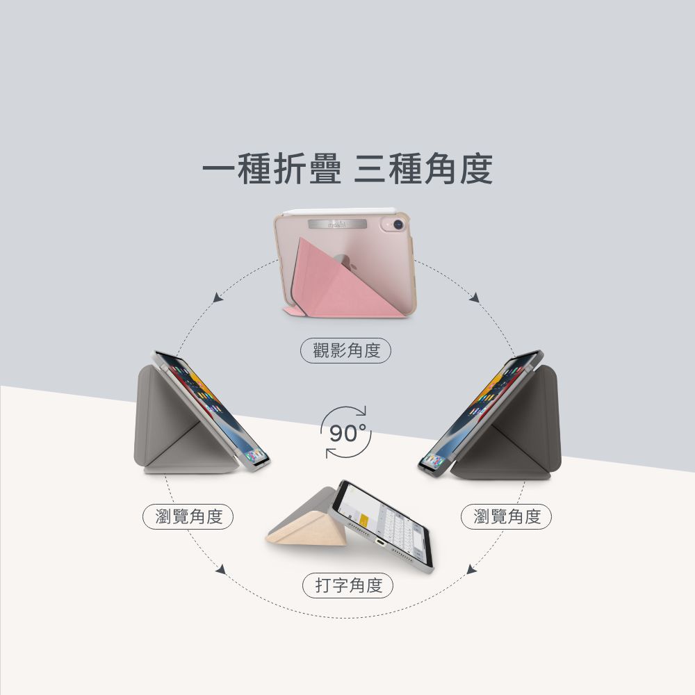 Moshi iPad mini 第六代, 第七代 (8.3-inch) VersaCover 多角度前後保護套櫻花粉|炭黑Cases, Covers, & Skinsmoshi 官方旗艦店