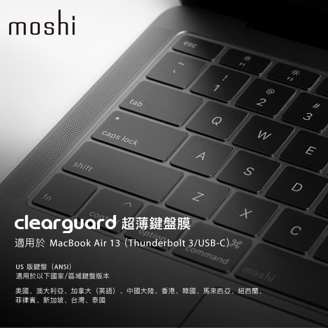 Moshi ClearGuard for MacBook Air 13 超薄鍵盤膜 (2018-2019, US透明)Moshi ClearGuard for MacBook Air 13 超薄鍵盤膜 (2018-2019, US透明)Keyboard & Trackpad Coversmoshi 官方旗艦店