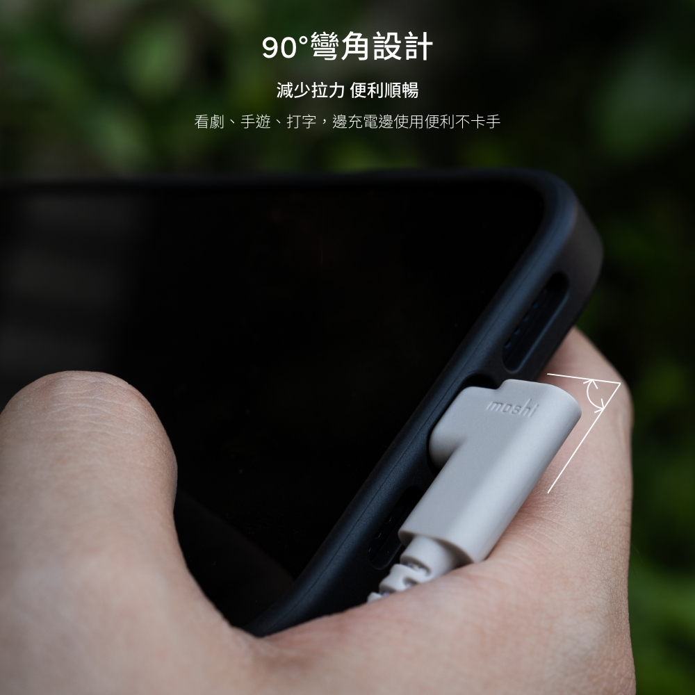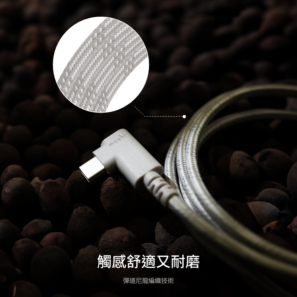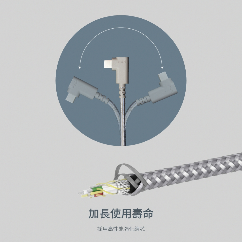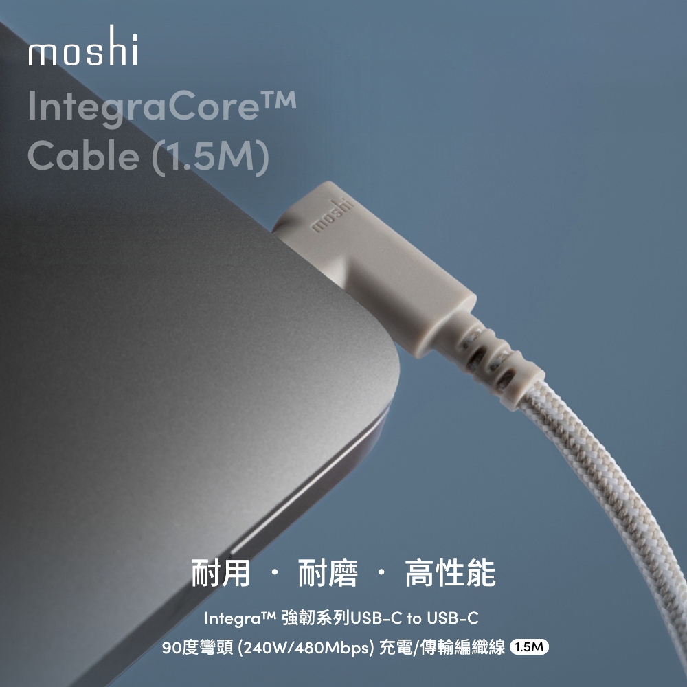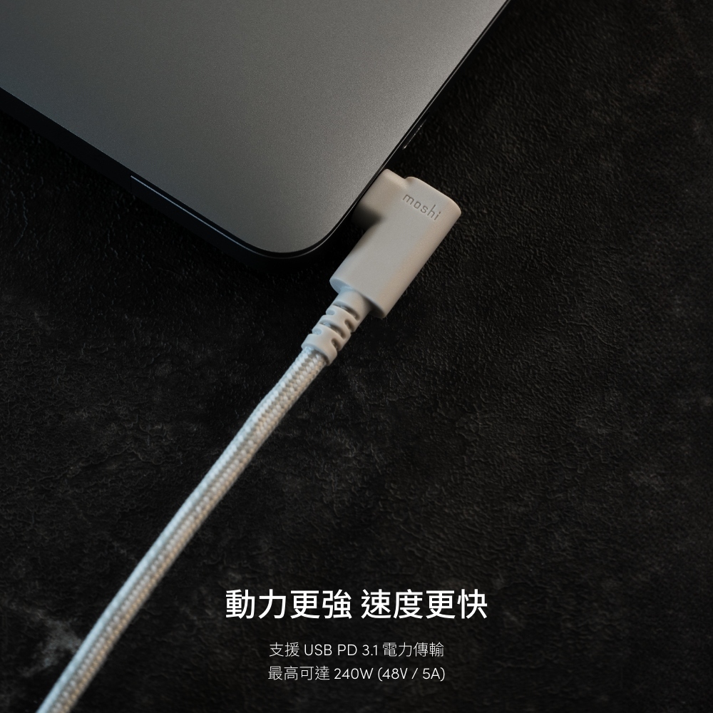 Moshi Integra USB-C to USB-C 90度彎頭 240W/480Mbps 充電傳輸線 (1.5M)暖灰 1.5mCables, Chargers & Convertersmoshi 官方旗艦店