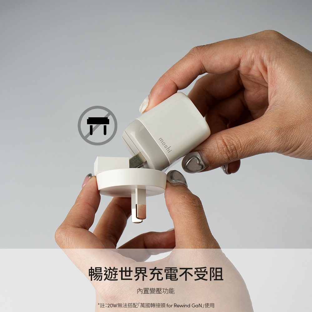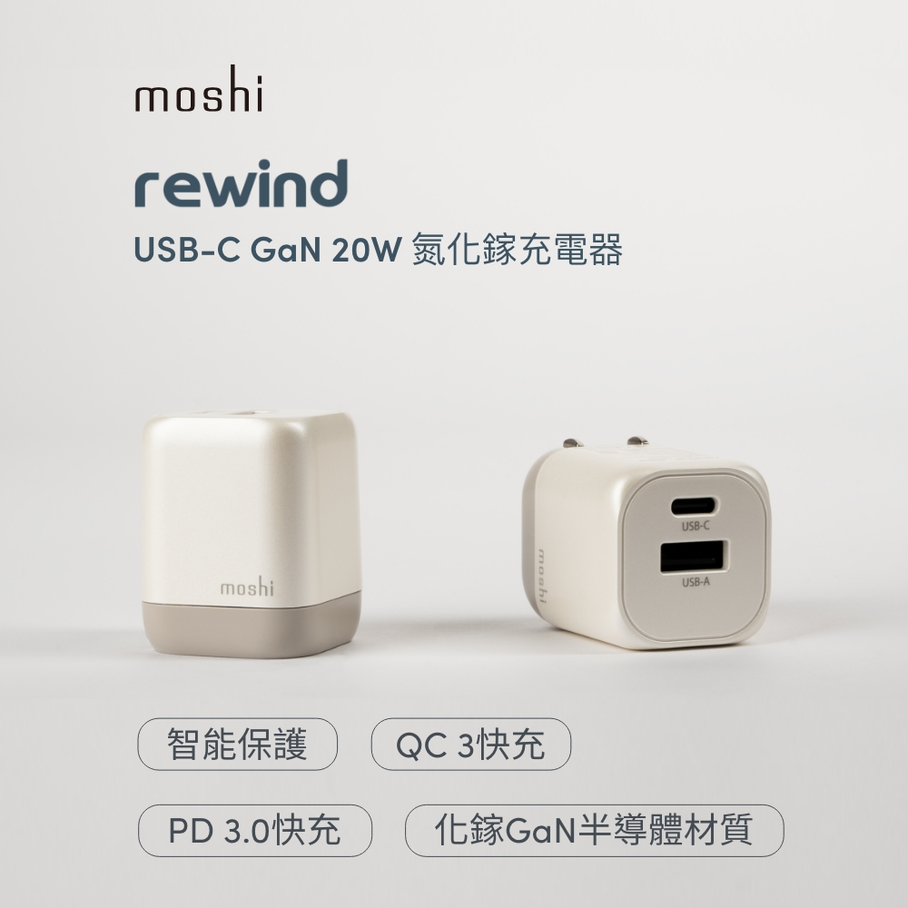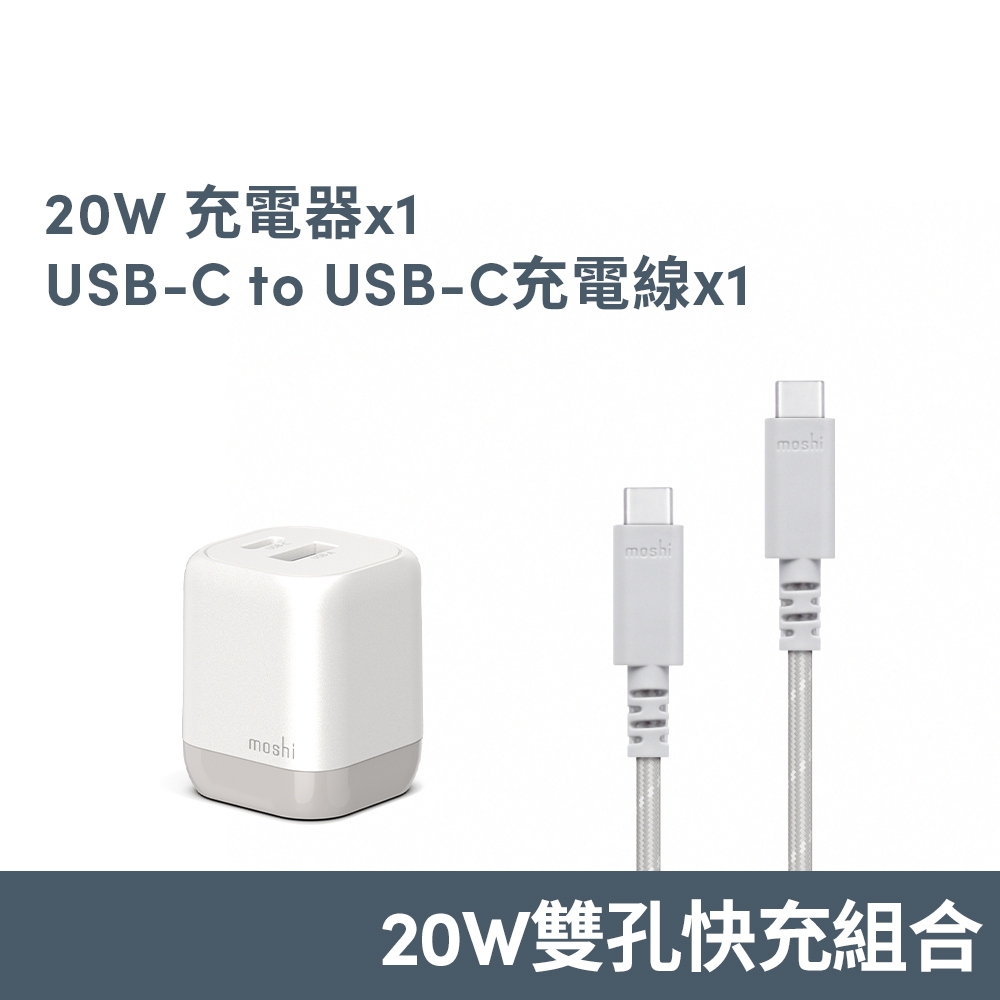 Moshi【快充組】Rewind GaN 20W 充電頭+USB-C to USB-C 充電線 (灰)單一規格Cables, Chargers & Convertersmoshi 官方旗艦店