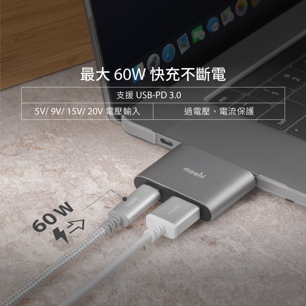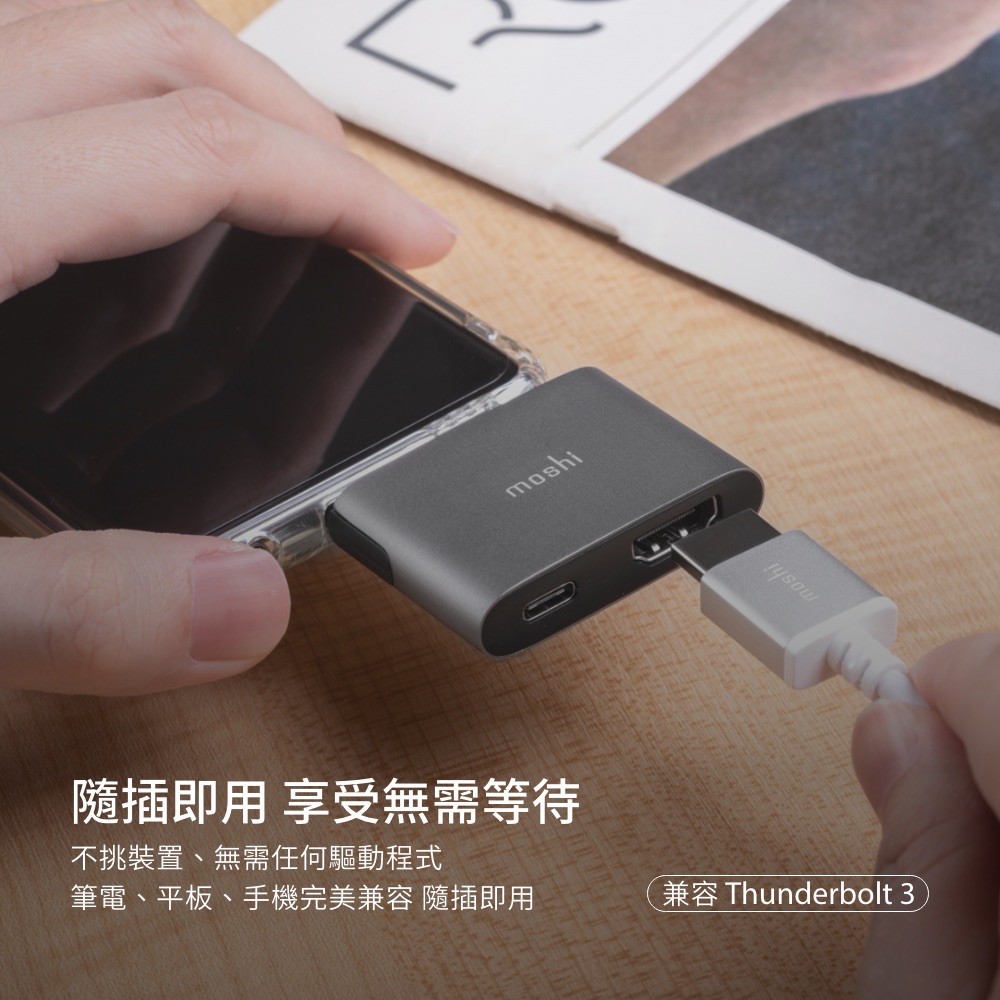 Moshi USB-C to HDMI 雙端口轉接器 (支援 4K HDR / PD 60W)鈦灰Cables, Chargers & Convertersmoshi 官方旗艦店