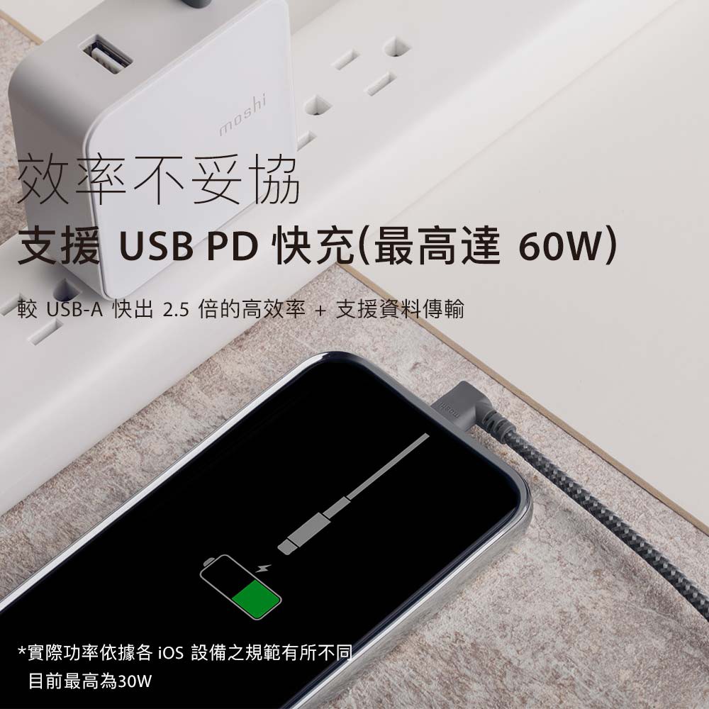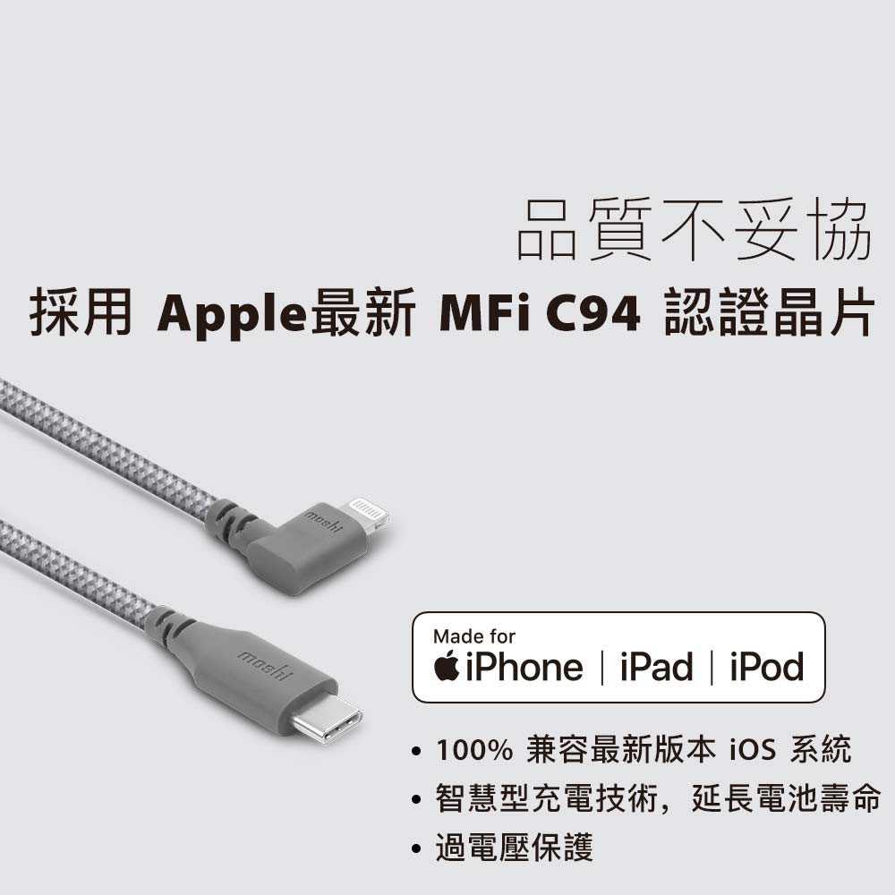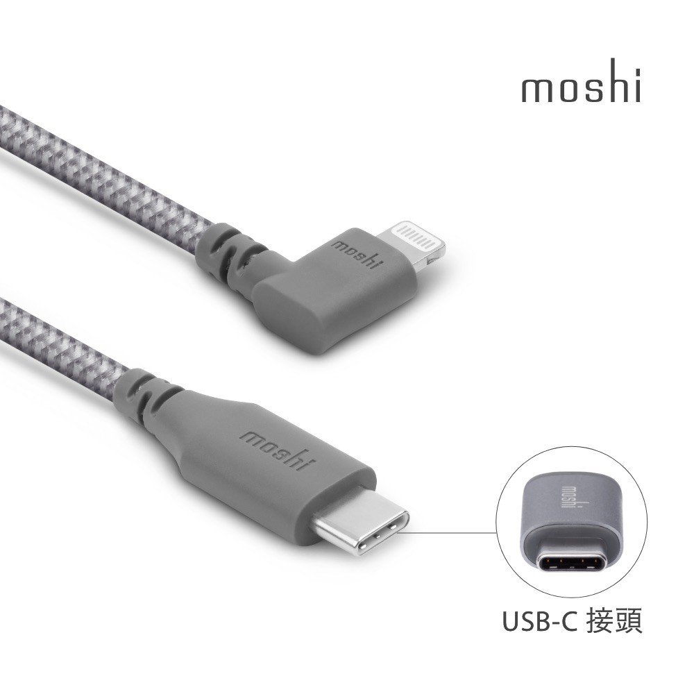 Moshi Integra USB-C to Lightning 90度彎頭 充電線 傳輸編織線(1.5m)iphone灰Cables, Chargers & Convertersmoshi 官方旗艦店
