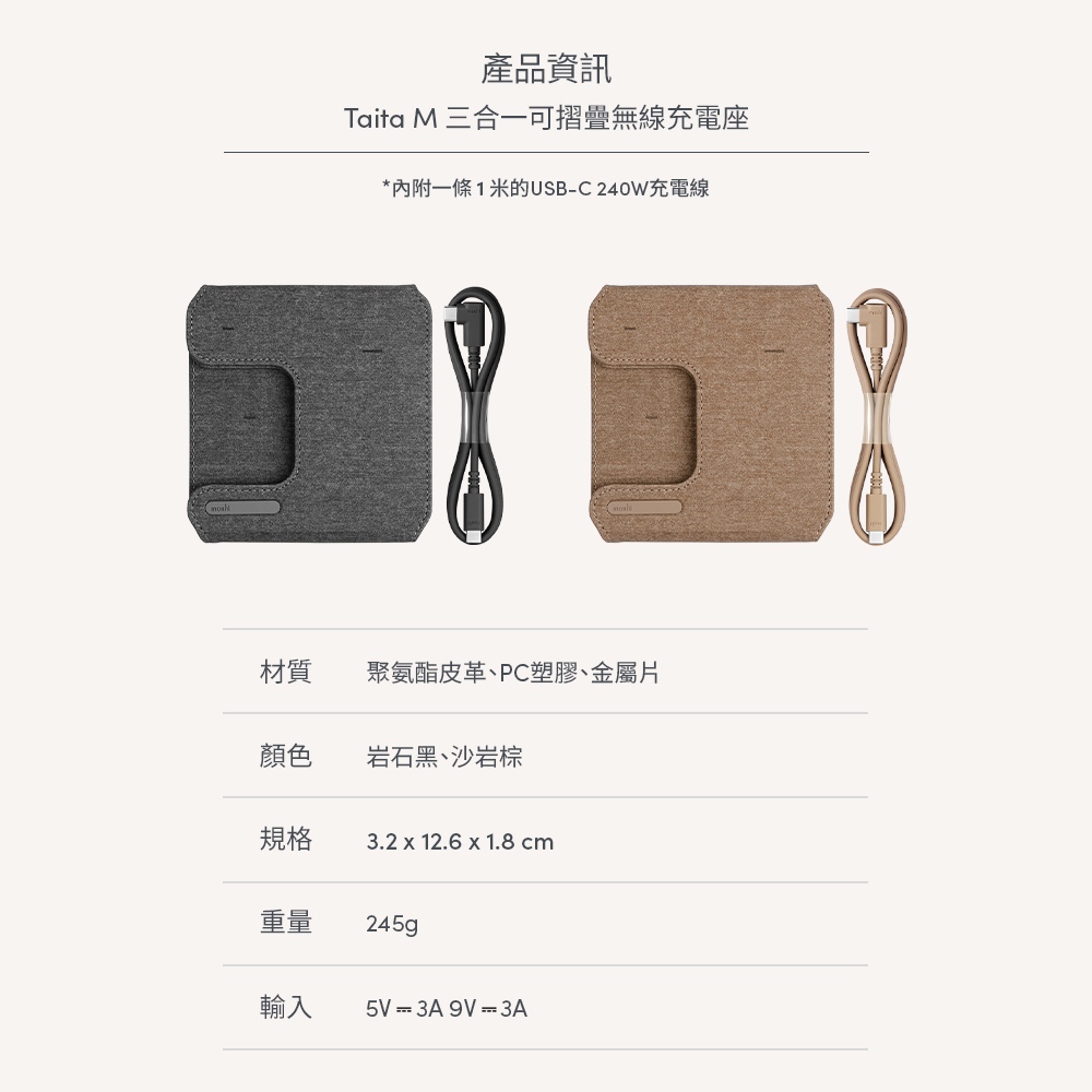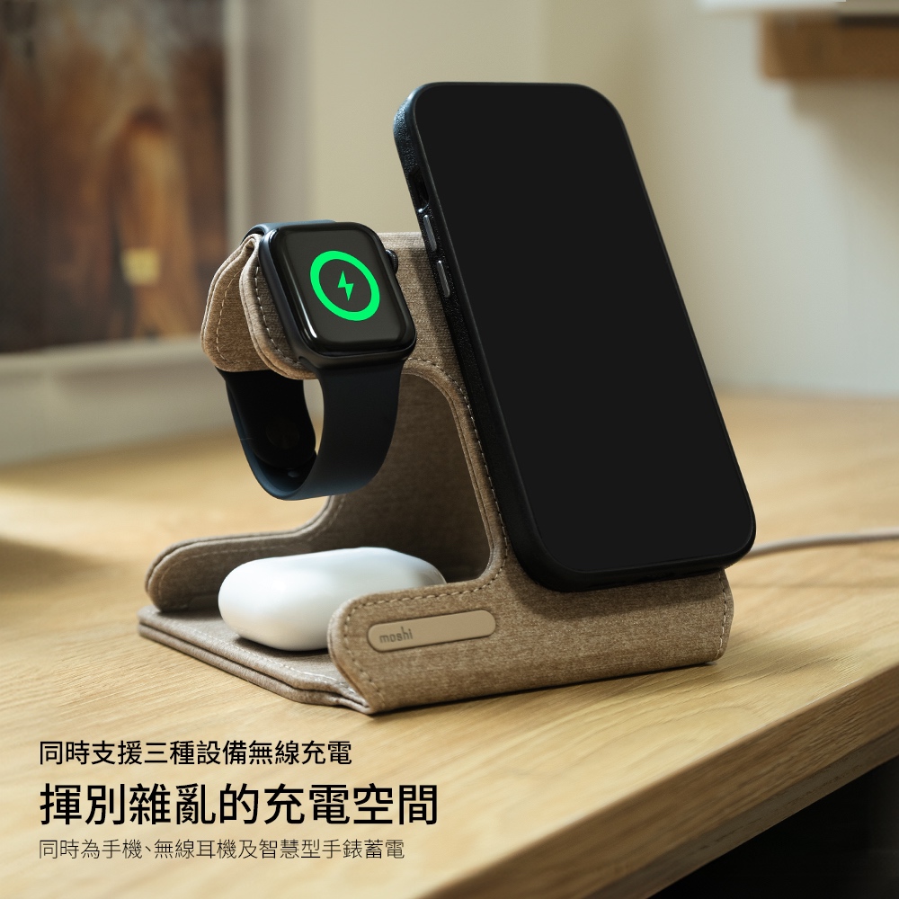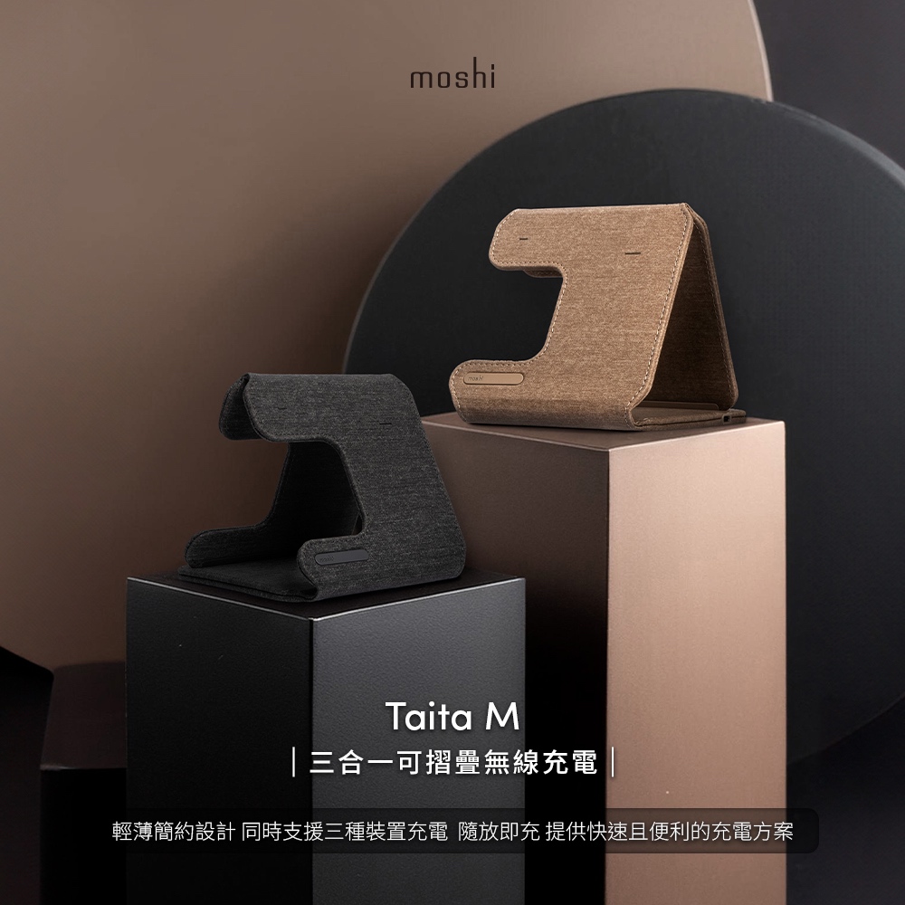 Moshi Taita M 三合一可摺疊無線充電座岩石黑|沙岩棕Cables, Chargers & Convertersmoshi 官方旗艦店