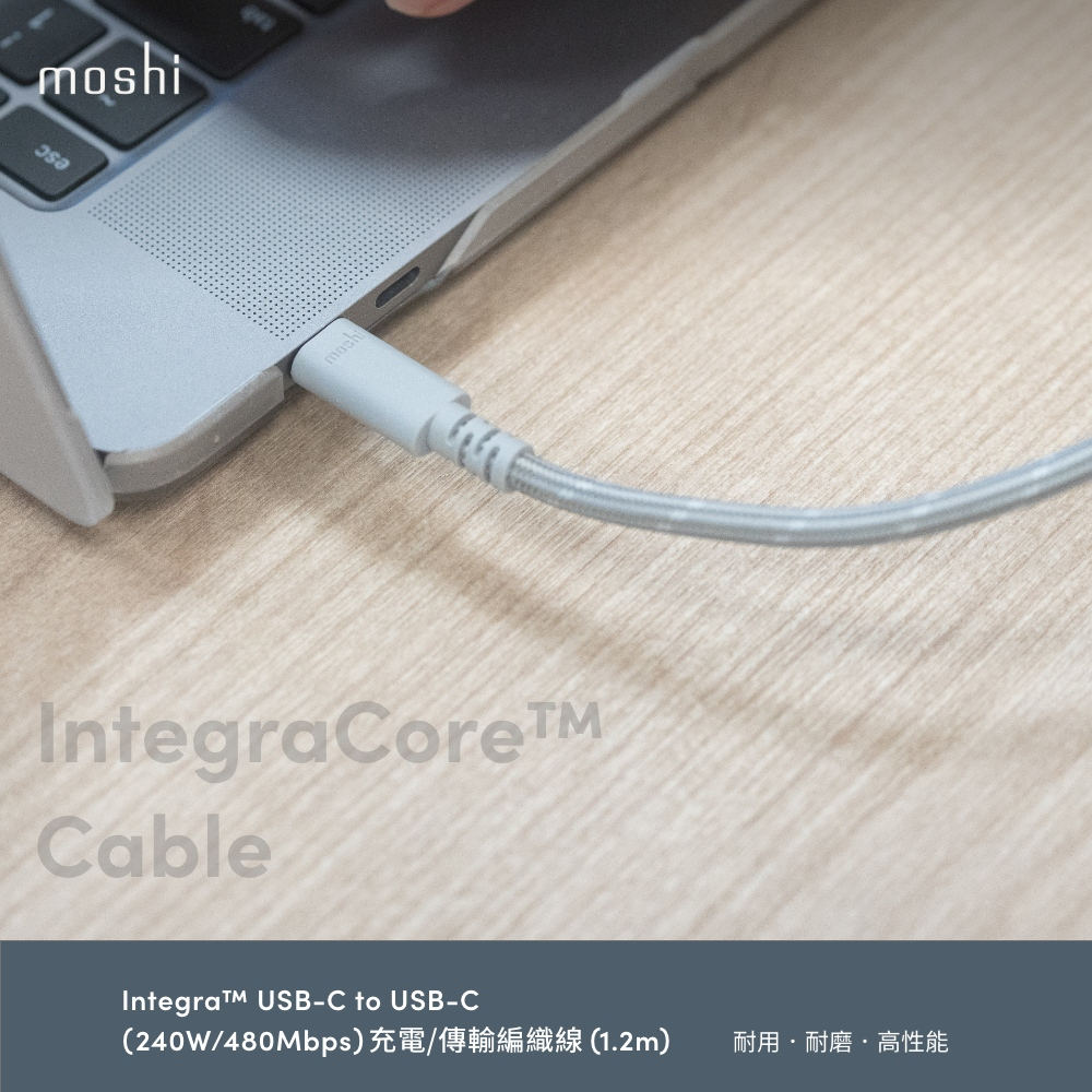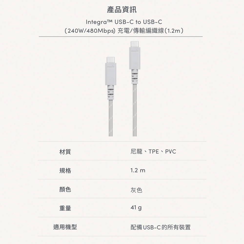 Moshi Integra USB-C to USB-C 240W/480Mbps 充電傳輸編織線 (1.2m)灰 1.2mCables, Chargers & Convertersmoshi 官方旗艦店