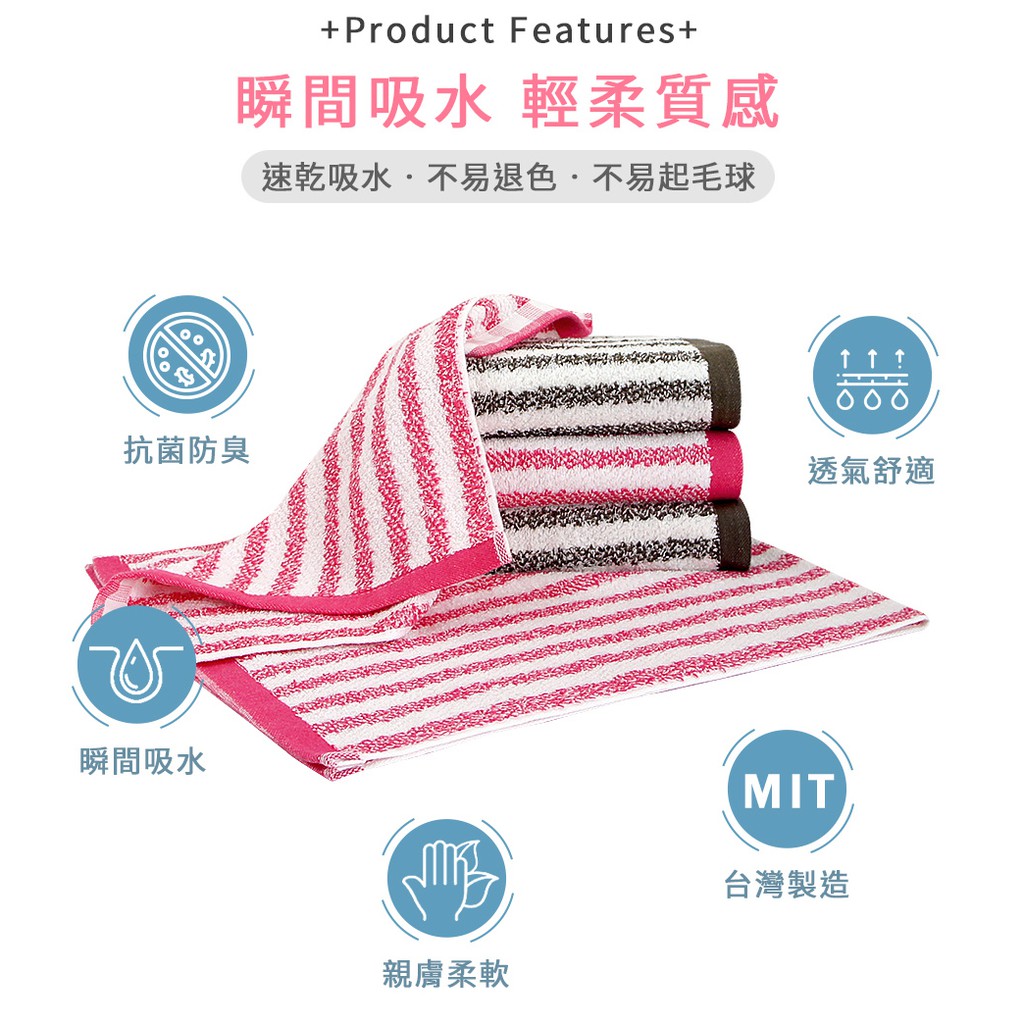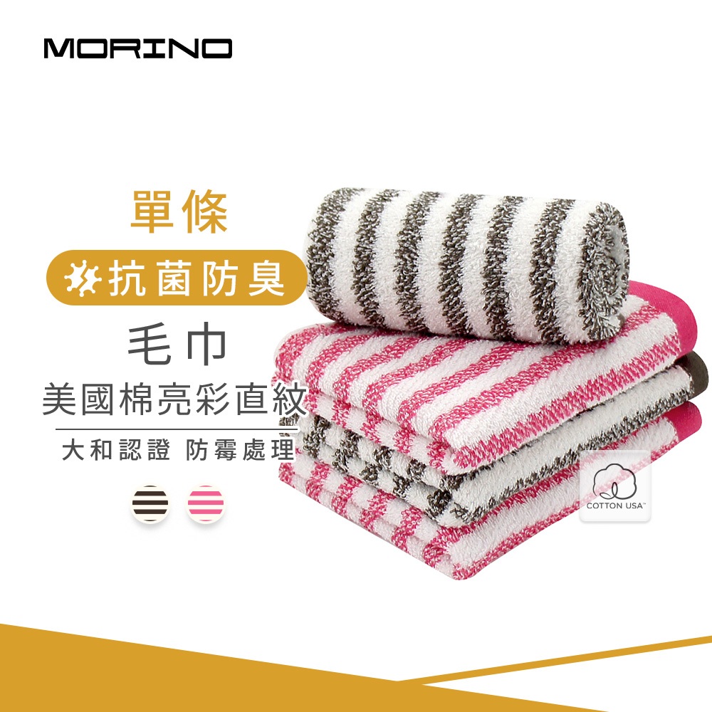 【MORINO】美國棉亮彩直紋毛巾_33*75cm MO774 日本大和認證抗菌防臭 台灣製造蜜桃紅|橄欖綠Towels & BathrobesMORINO摩力諾 居家生活旗艦館