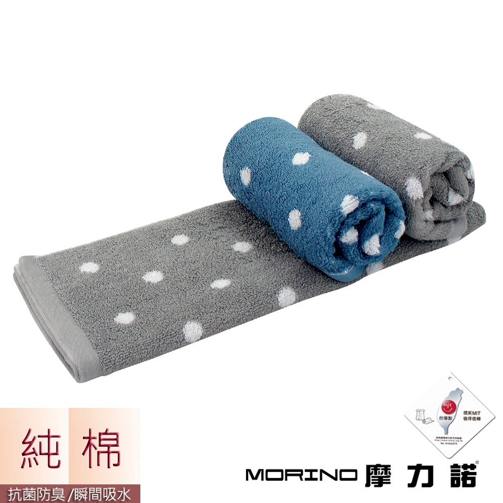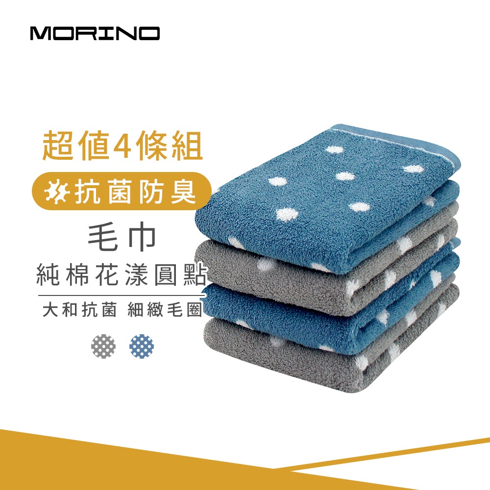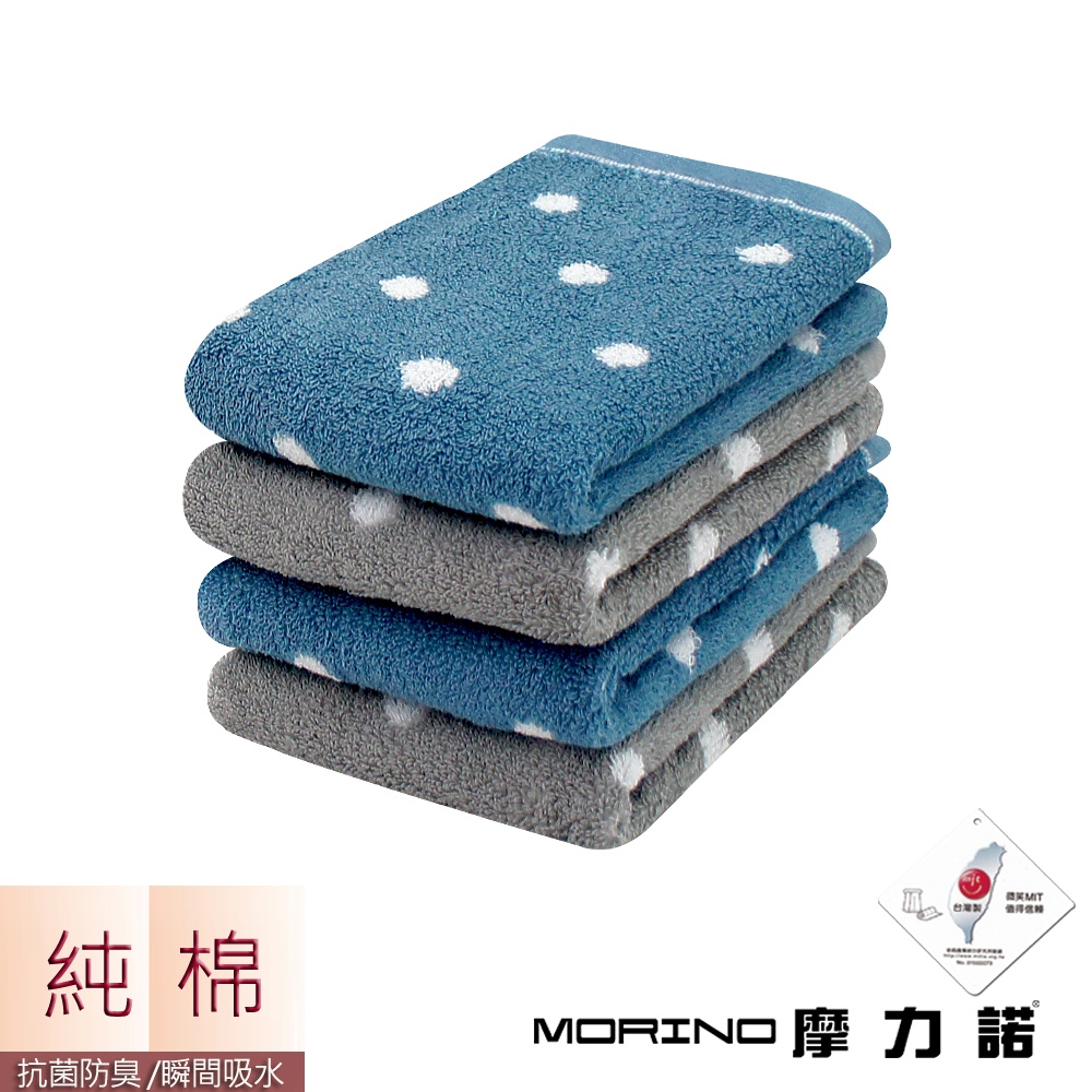 【MORINO】(4條組)抗菌防臭純棉花漾圓點毛巾_33*75cm MO775 日本大和抗菌認證 台灣製造質感灰|丹寧藍|隨機混搭Towels & BathrobesMORINO摩力諾 居家生活旗艦館