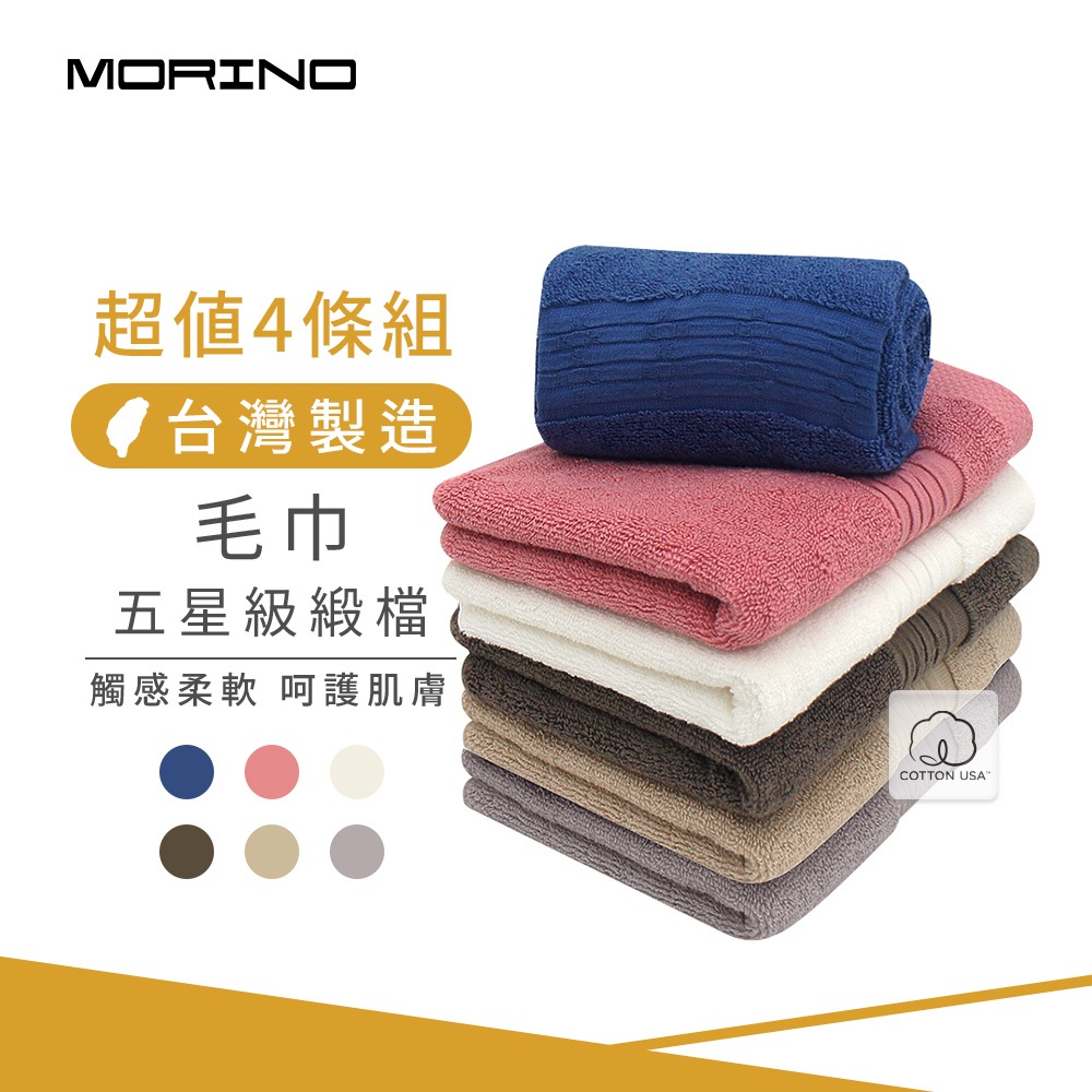 【MORINO】(4條組)美國棉五星級緞檔毛巾_33*75cm MO727灰紫(淺灰)|豆紅(紅色)|栗棕(深灰)|混搭(隨機)|卡其(駝色)|釉藍(藍色)Towels & BathrobesMORINO摩力諾 居家生活旗艦館