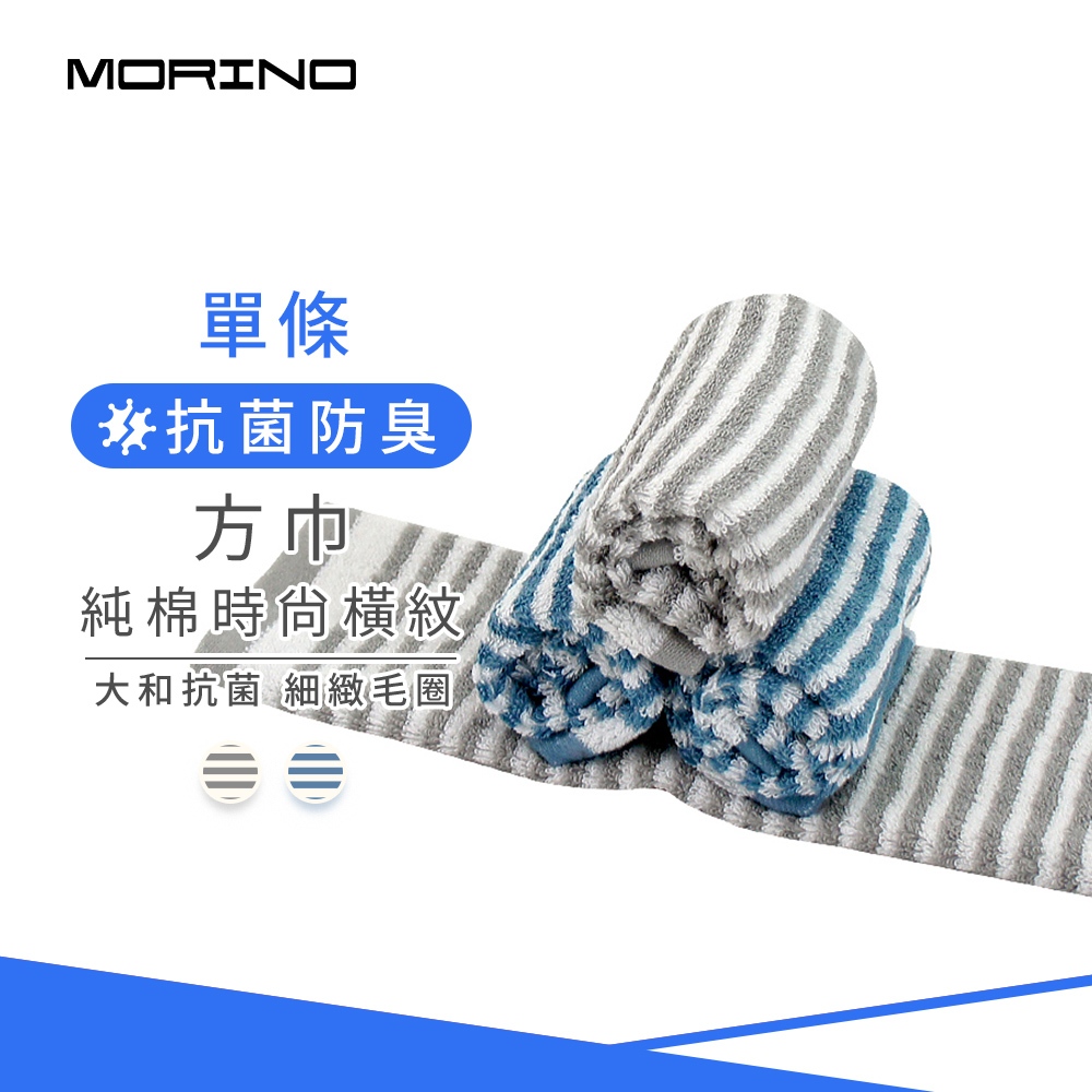 【MORINO】抗菌防臭純棉時尚橫紋方巾 33*35cm MO676 日本大和抗菌認證 台灣製造質感灰|丹寧藍Towels & BathrobesMORINO摩力諾 居家生活旗艦館