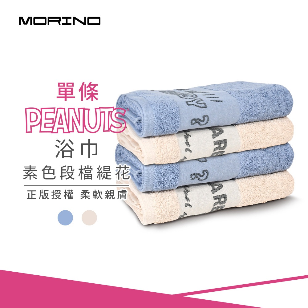 SNOOPY史努比-(單條)素色緞檔緹花浴巾_70*135cm SN414【MORINO】棕色|藍色Towels & BathrobesMORINO摩力諾 居家生活旗艦館
