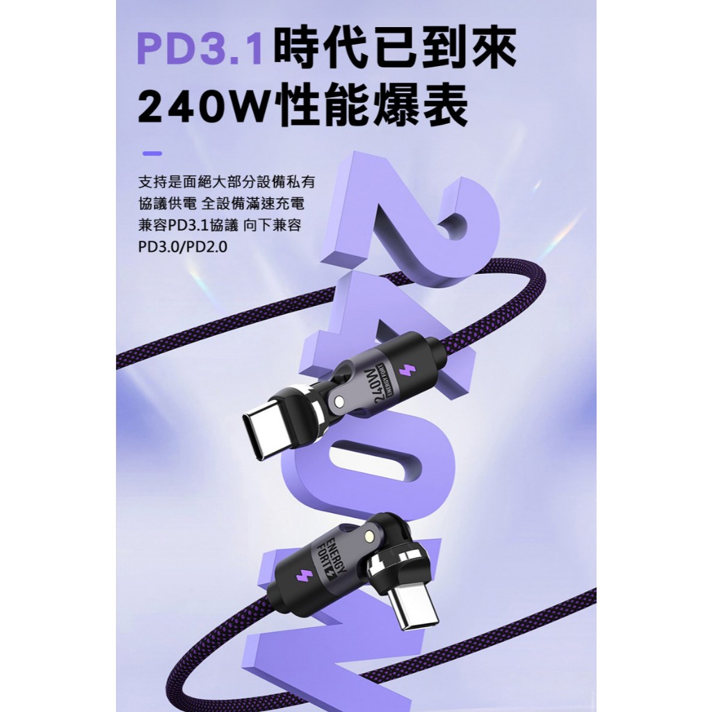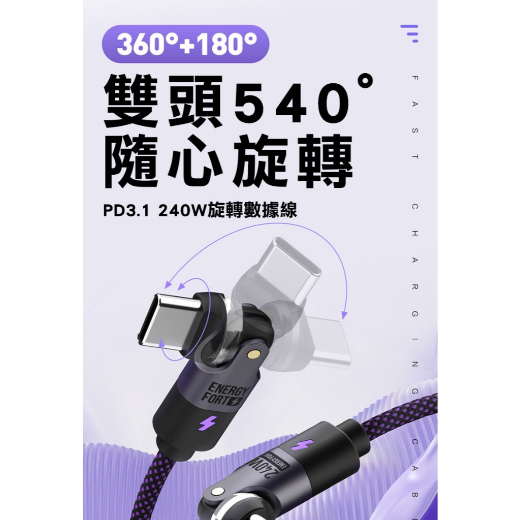 ENERGY FORT Type-C to Type-C 540° 旋轉數據線(240W)充電線 傳輸線1.2M,一般款|1.8M,一般款Cables, Chargers & ConvertersMOREFINE 官方商城