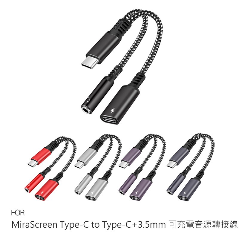 MiraScreen Type-C to Type-C+3.5mm 可充電音源轉接線 音源線 耳機線 數位解碼 高相容性黑色|銀色|紅色Cables, Chargers & ConvertersMOREFINE 官方商城