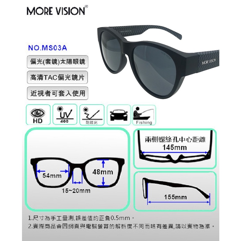 近視用偏光太陽眼鏡 MS03D 偏光套鏡近視用偏光太陽眼鏡 MS03D 偏光套鏡SunglassesMORE VISION 墨視野 專業偏光太陽眼鏡