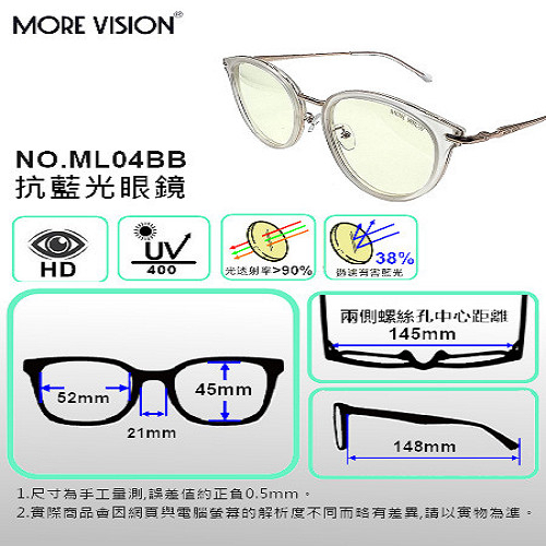 抗藍光眼鏡 抗UV眼鏡 ML04BB抗藍光眼鏡 抗UV眼鏡 ML04BBFrames & GlassesMORE VISION 墨視野 專業偏光太陽眼鏡