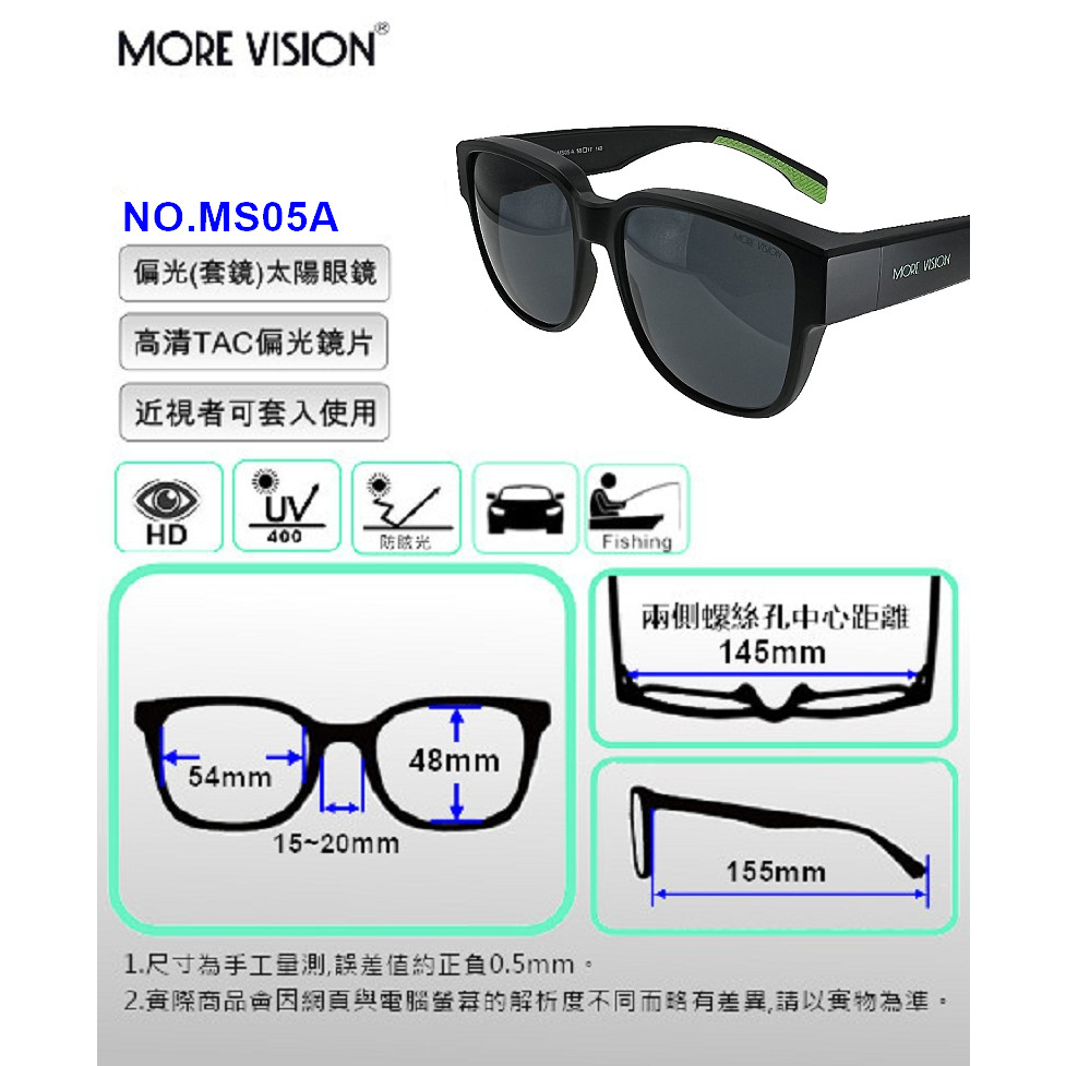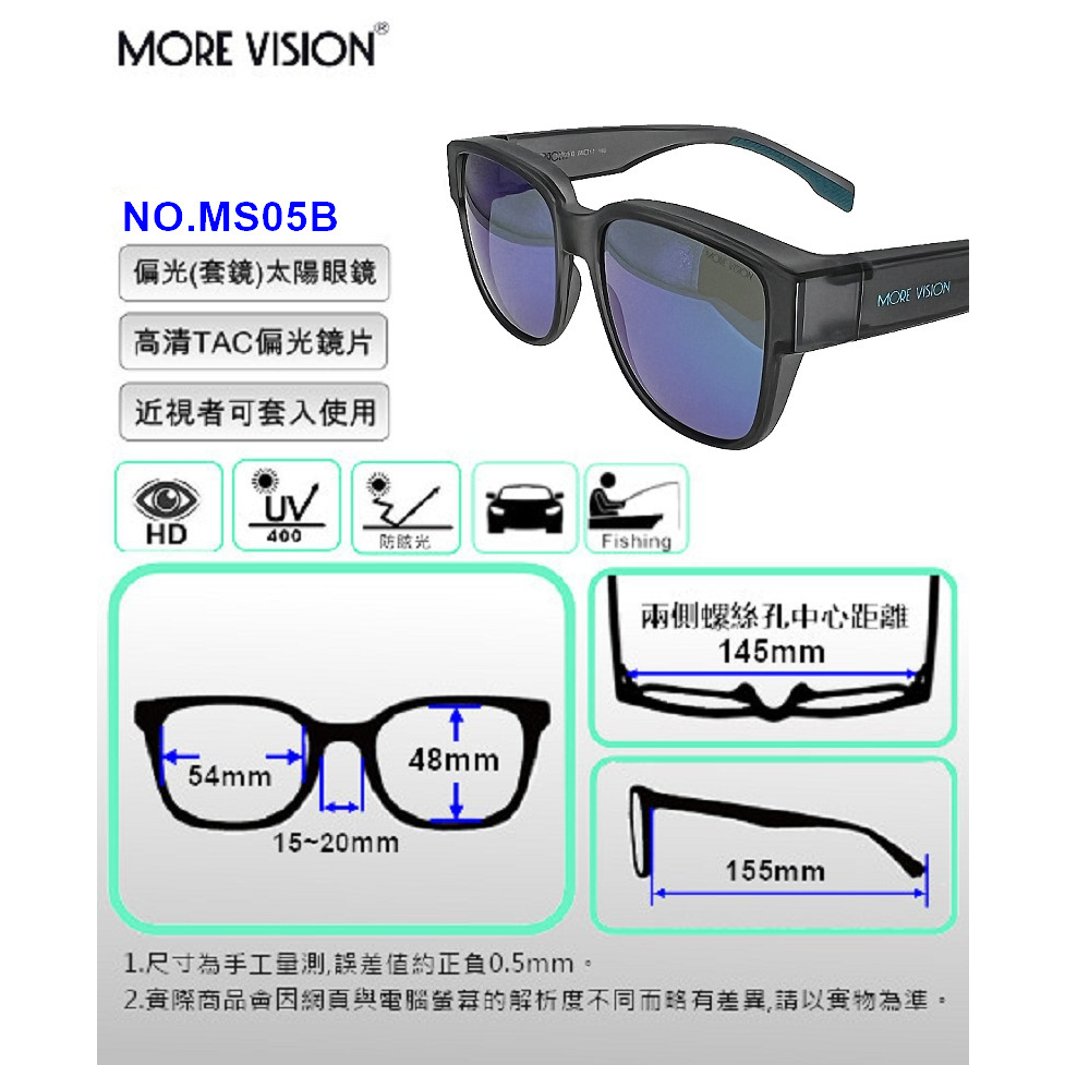 近視用偏光太陽眼鏡 MS05A 偏光套鏡近視用偏光太陽眼鏡 MS05A 偏光套鏡SunglassesMORE VISION 墨視野 專業偏光太陽眼鏡