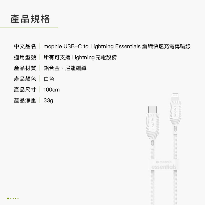 mophie essentials 1M USB-C to Lightning 編織充電傳輸線 白 公司貨mophie essentials 1M USB-C to Lightning 編織充電傳輸線 白 公司貨Cables, Chargers & Convertersmophie 官方旗艦店 | 領券10%蝦幣回饋