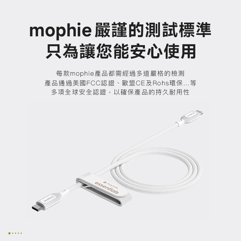 mophie essentials 2M USB-C to USB-C 編織充電傳輸線 白 公司貨