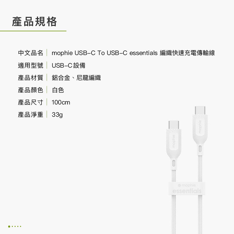 mophie essentials 1M USB-C to USB-C 編織充電傳輸線 白 公司貨mophie essentials 1M USB-C to USB-C 編織充電傳輸線 白 公司貨Cables, Chargers & Convertersmophie 官方旗艦店 | 領券10%蝦幣回饋