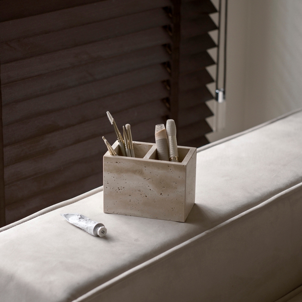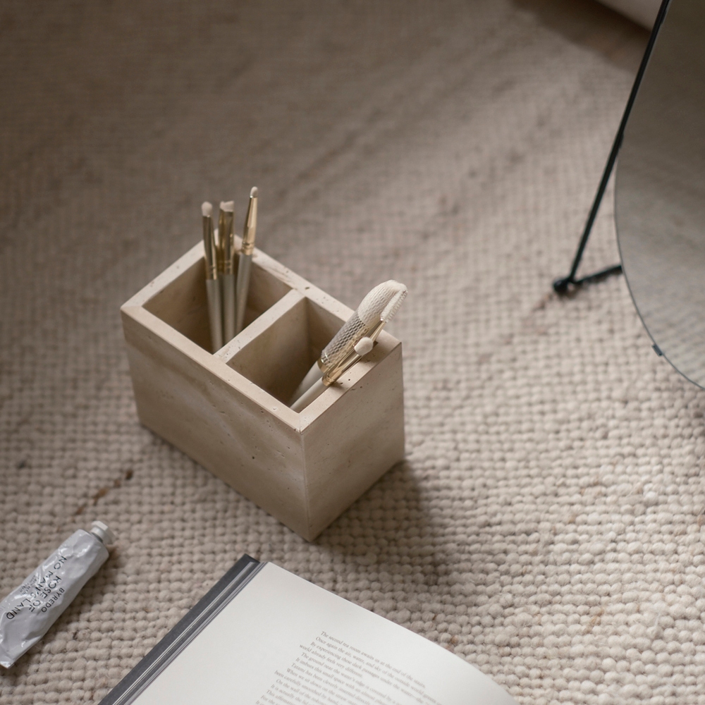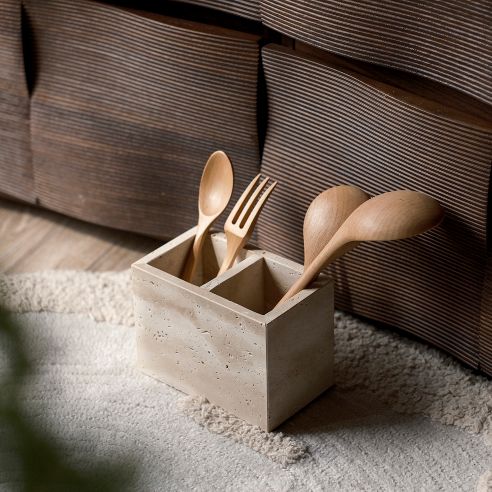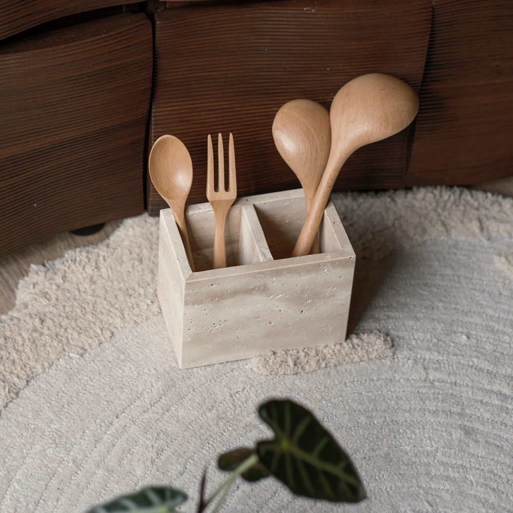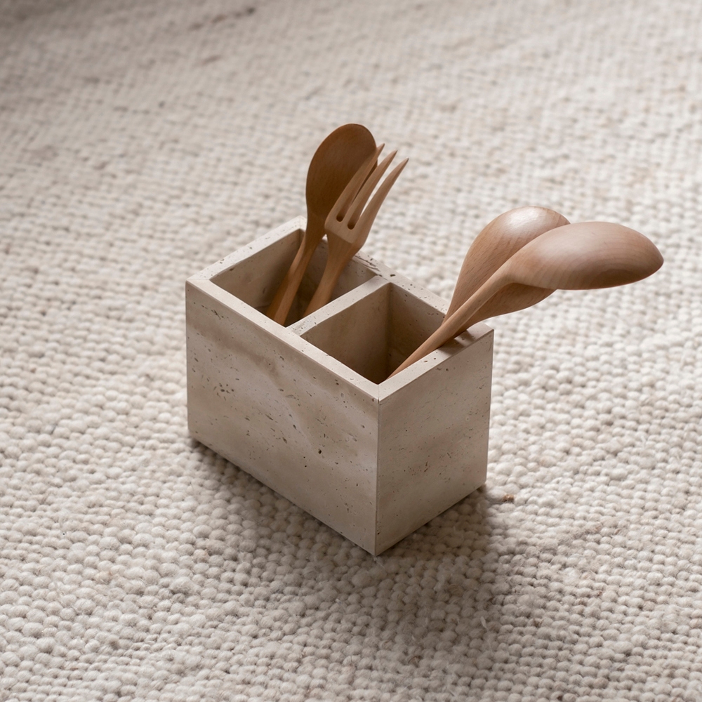 mooin dòng 侘寂天然黃洞石收納 餐具 廚房 收納 桌上收納 居家生活雙孔Desk Organizersmooin 居家生活選品
