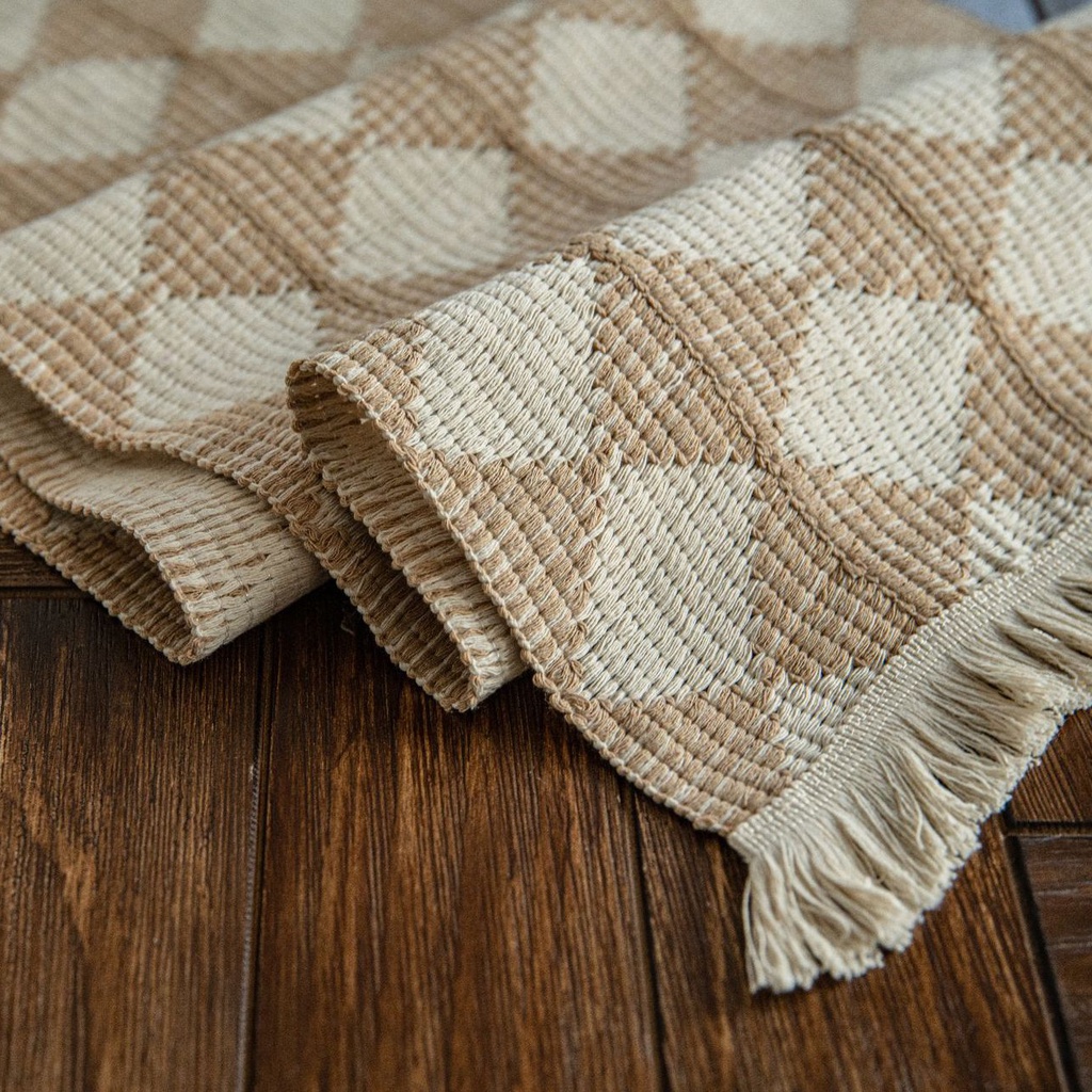 mooin årgång 撞色方塊桌巾 長桌巾 儀式感桌巾 撞色 方塊 桌巾 長款桌巾 餐桌桌巾 桌墊 餐墊卡其 (120×35)|黑 (120×35)|卡其米字 (120×30)|麻花米色 (120×30)|米字桌旗 (120×30)Table Clothsmooin 居家生活選品