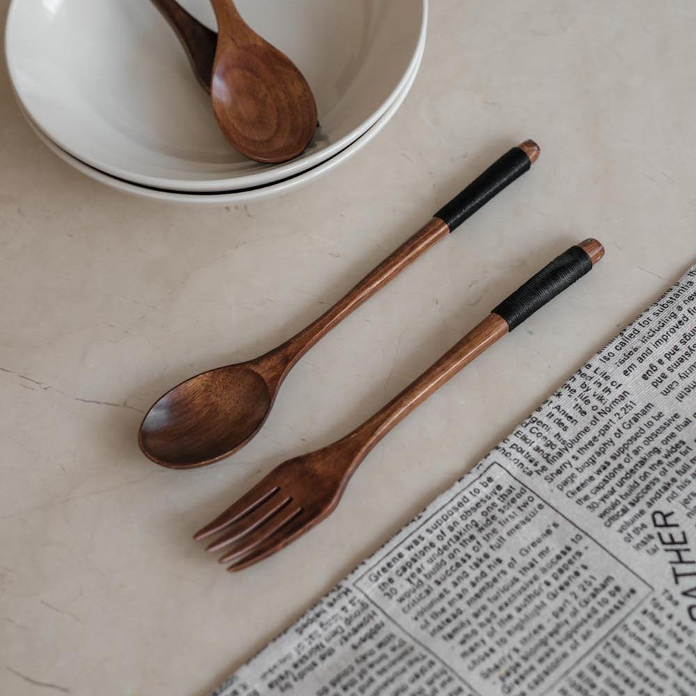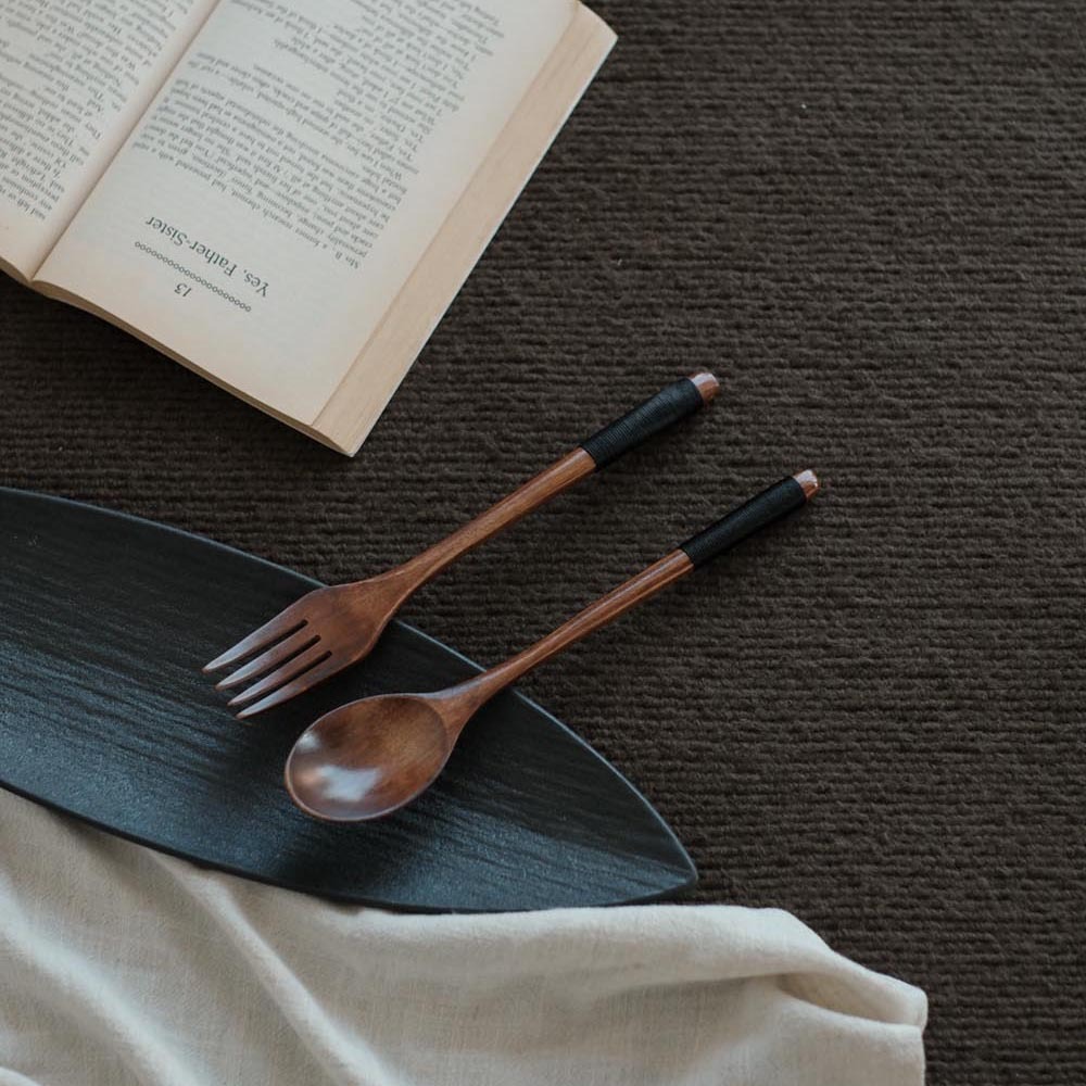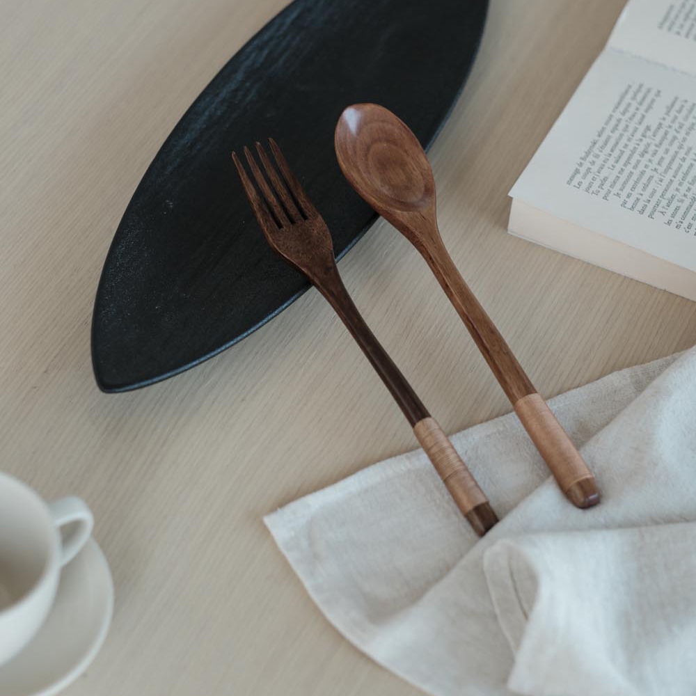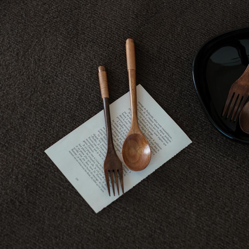 mooin teaktræ 完食叉勺 木製 湯匙 勺子 湯勺 叉子 餐叉 餐廚配件 餐具餐叉 – 米麻|餐勺 – 米麻|餐勺 – 黑麻|餐叉 – 黑麻Cutleriesmooin 居家生活選品