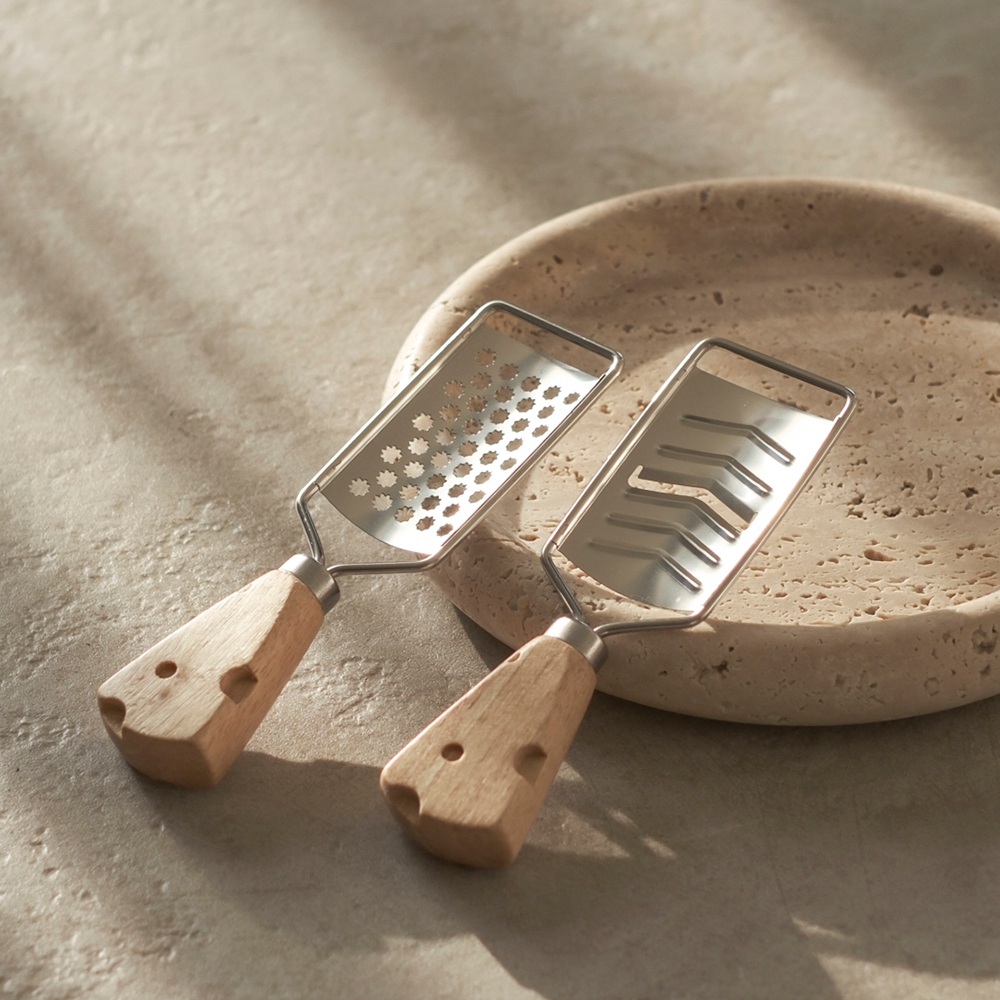 mooin Riva 木柄刨絲器 蒜蓉磨泥器 芝士刨刀 304不鏽鋼刨刀 不銹鋼刨絲器 磨泥刨絲工具 廚房必備小工具細刨刀|粗刨刀Spatulas & Cooking Tweezersmooin 居家生活選品