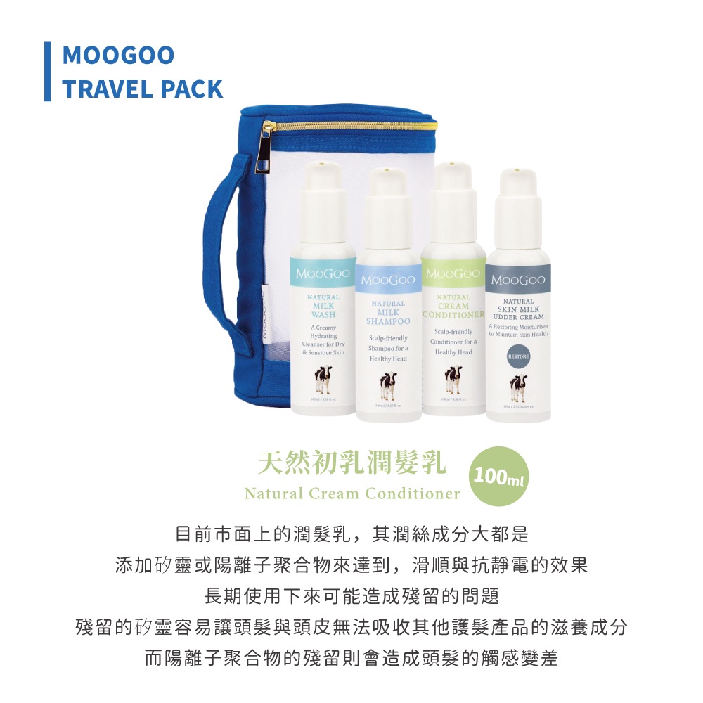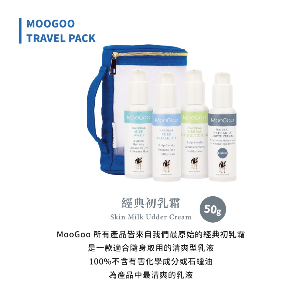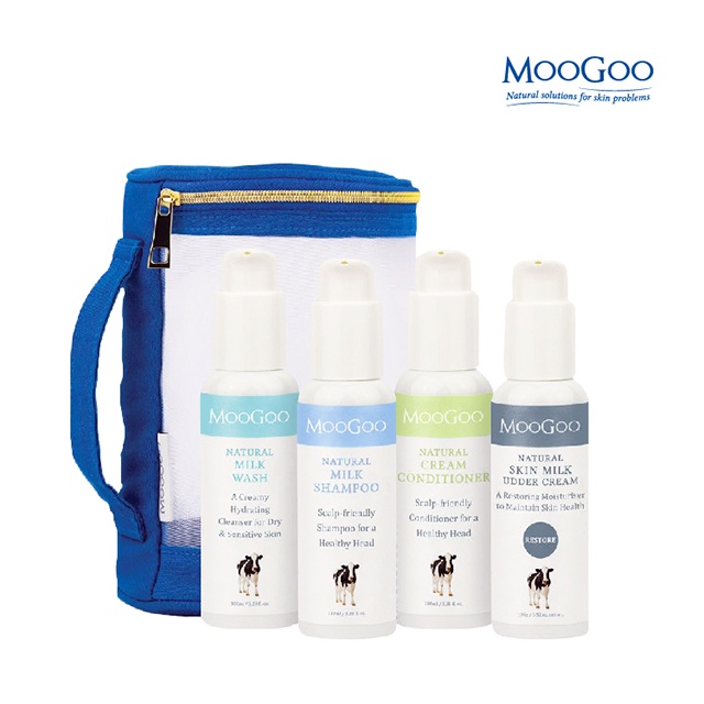 MooGoo慕爾果 四入輕巧旅行組 ( 沐浴乳、洗髮乳、潤髮乳、乳液)MooGoo旅行組|小小牛旅行組 (幼童適用,品項不同)MooGoo 慕爾果官方旗艦館