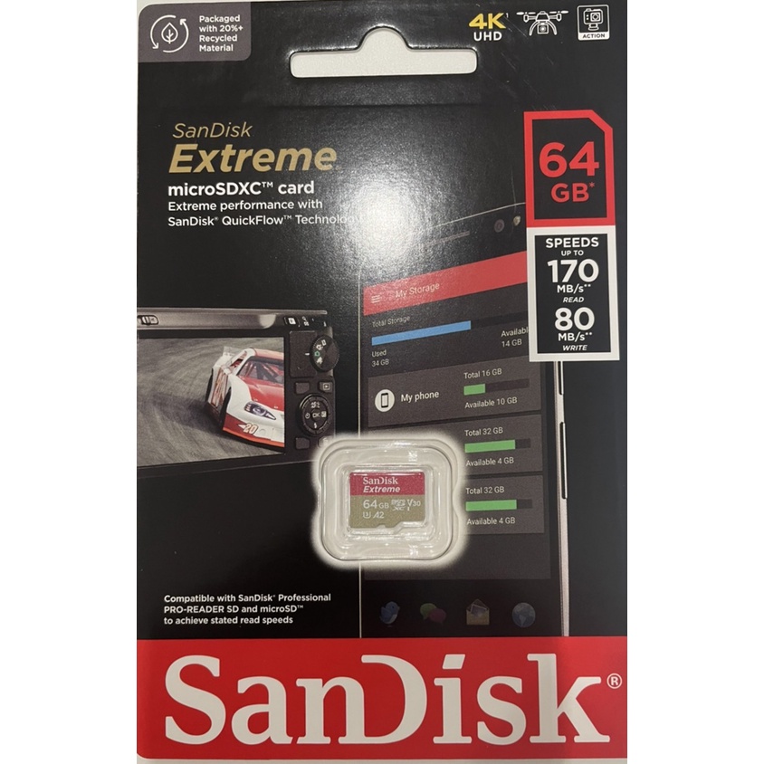 SanDisk 32G 32GB 64G 128G microSD SDXC Extreme U3 A2 儲存裝置64GB|128GB|32GBOthersMon.King 儲存設備專賣店